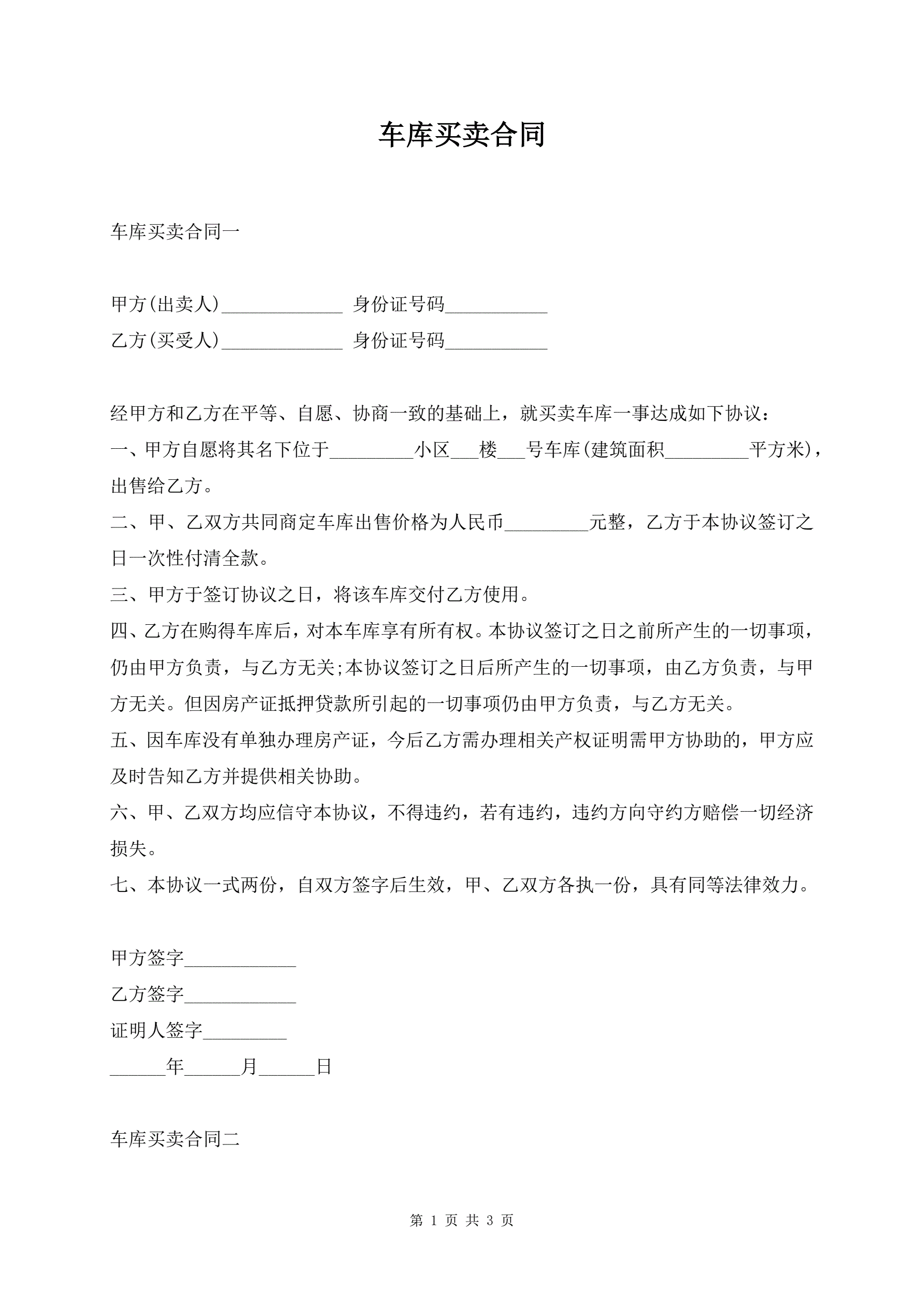 车库买卖合同