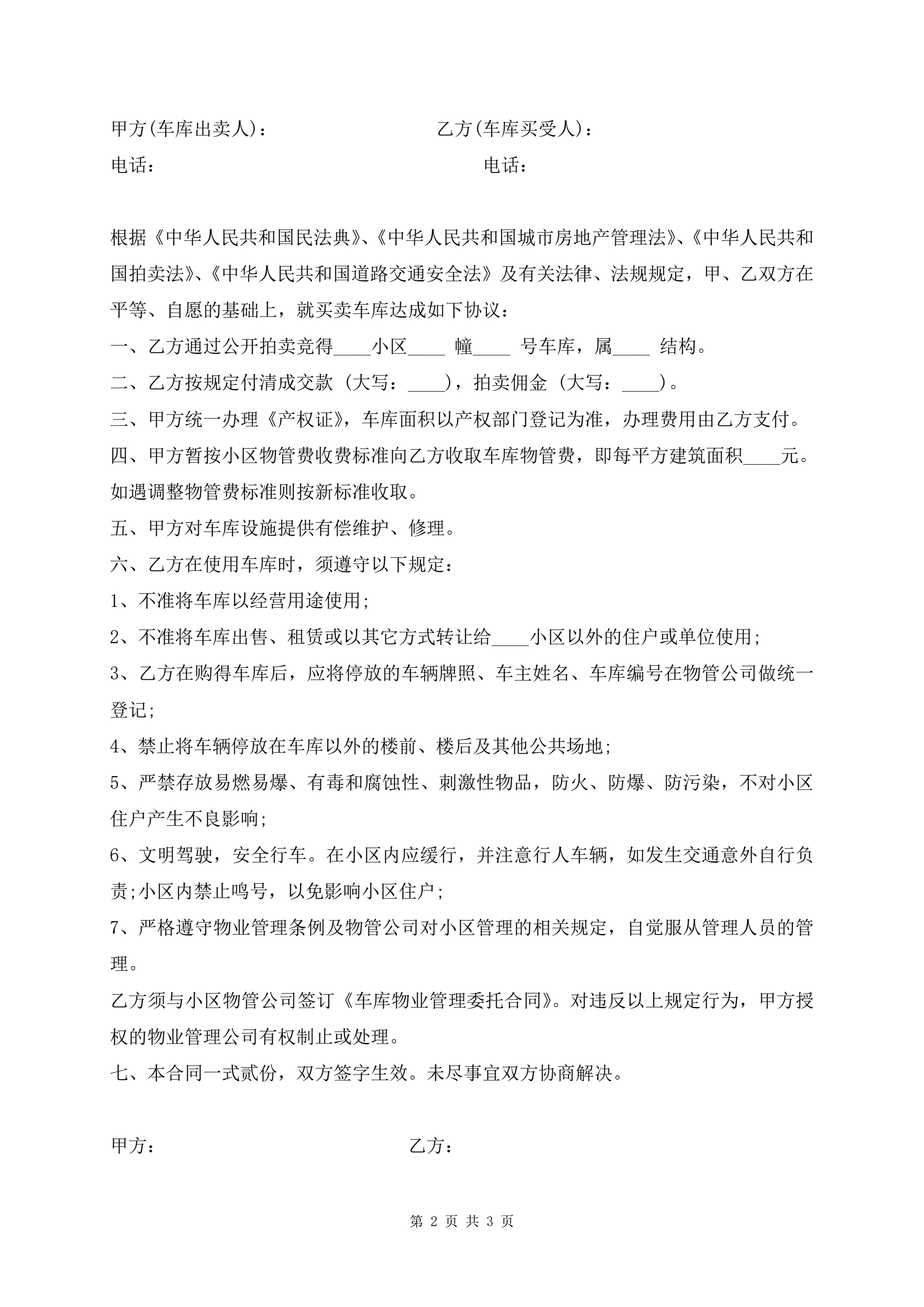>车库买卖合同