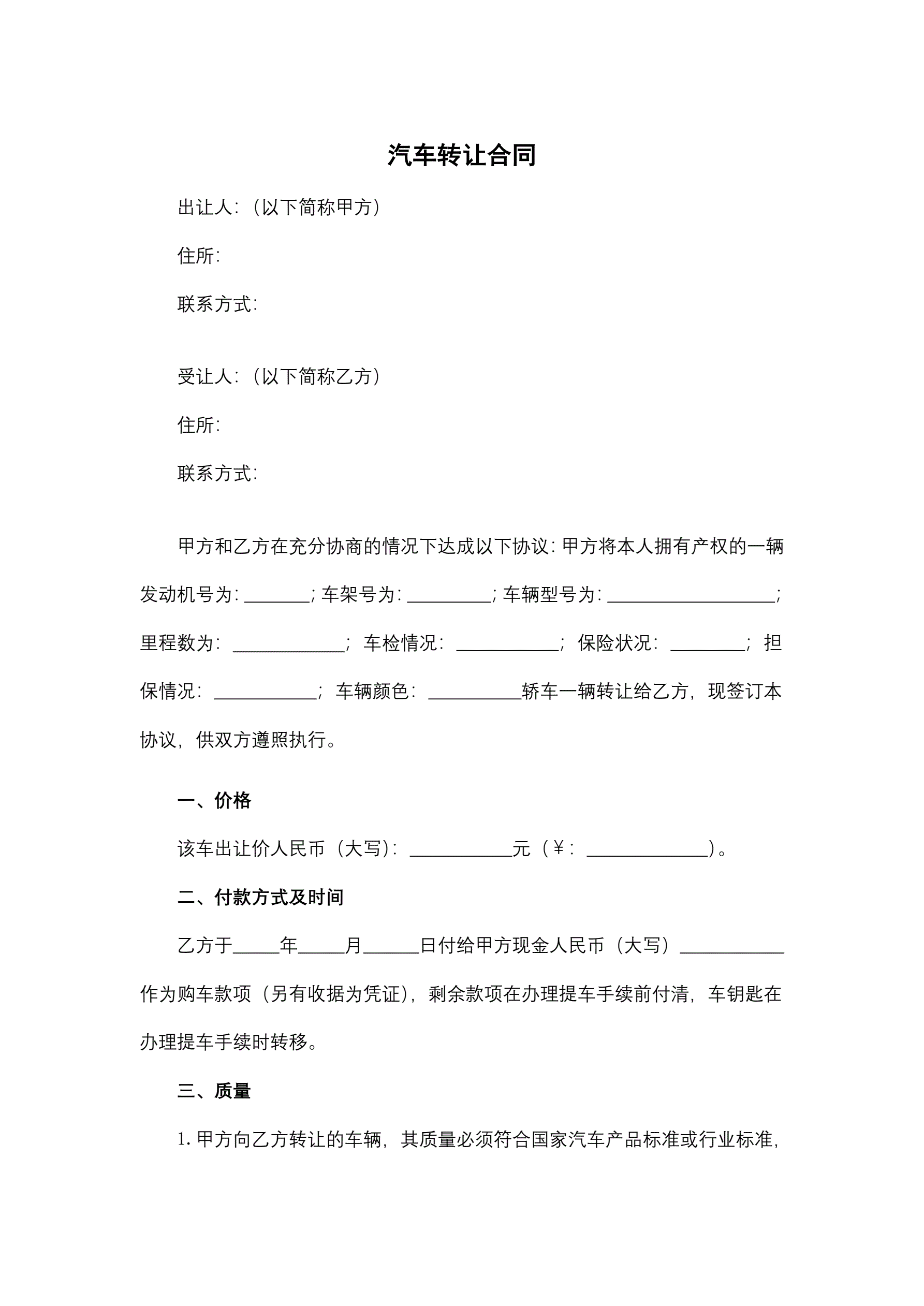 合同名称:汽车转让合同