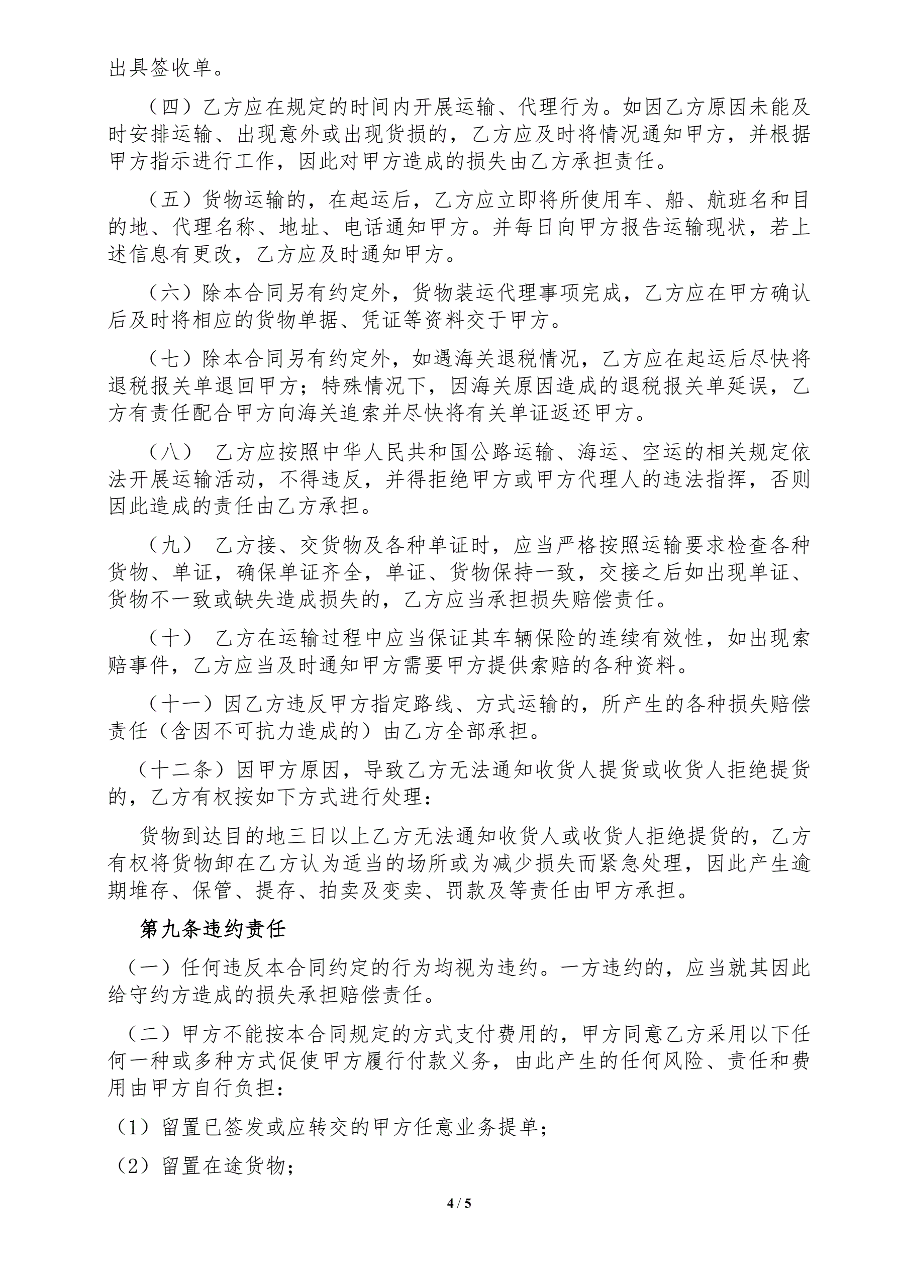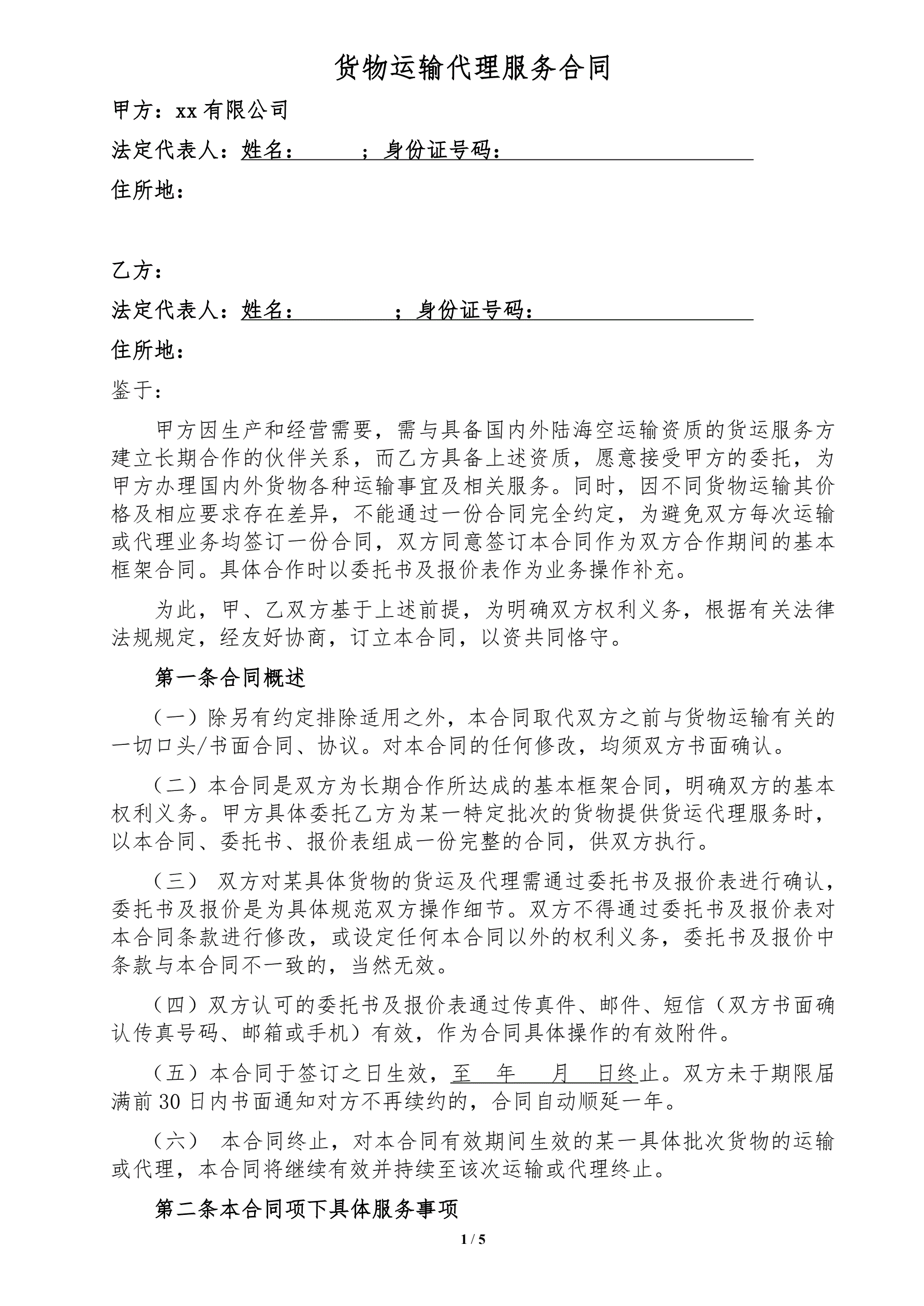 货物运输代理服务合同