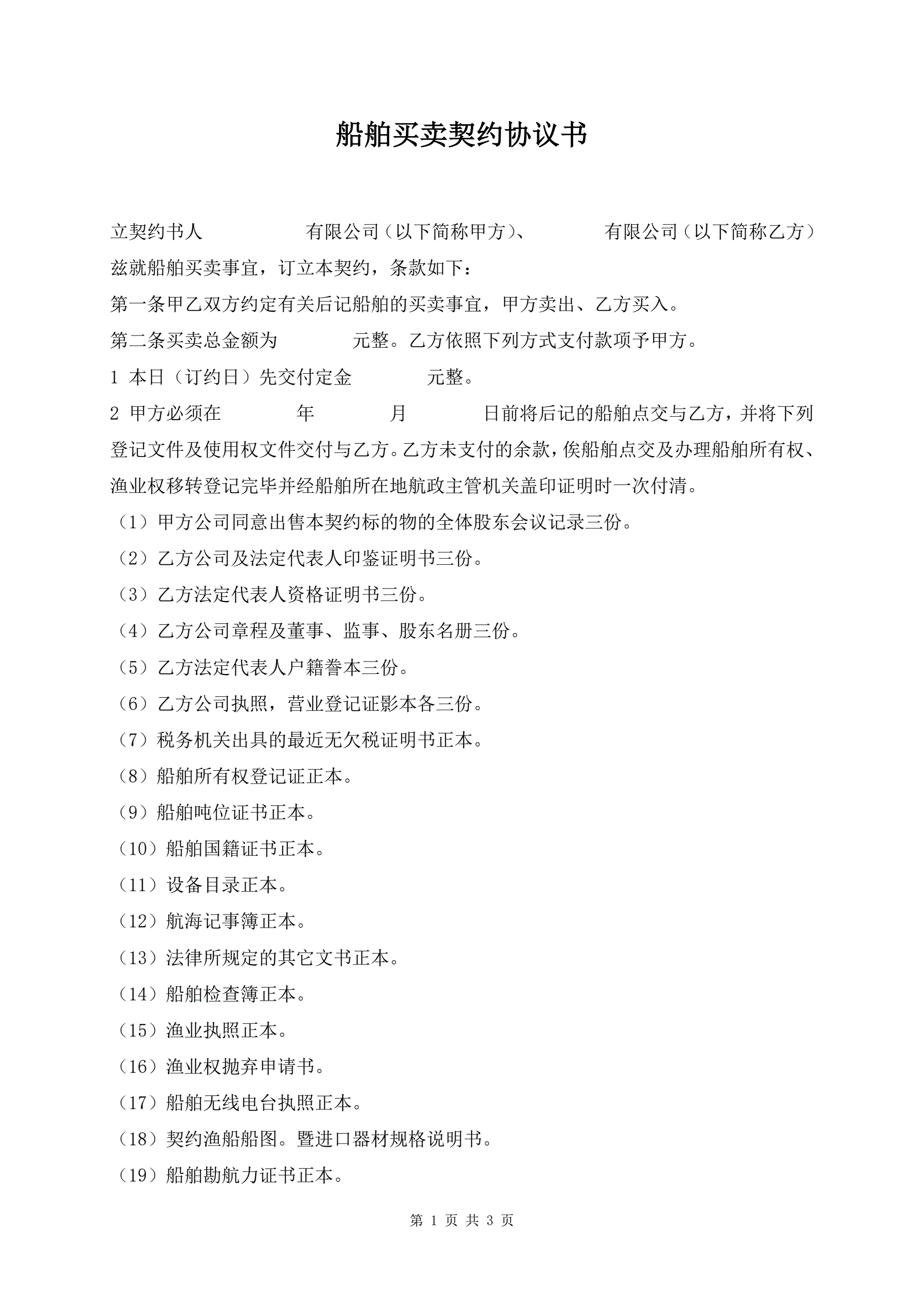 >船舶买卖契约协议书