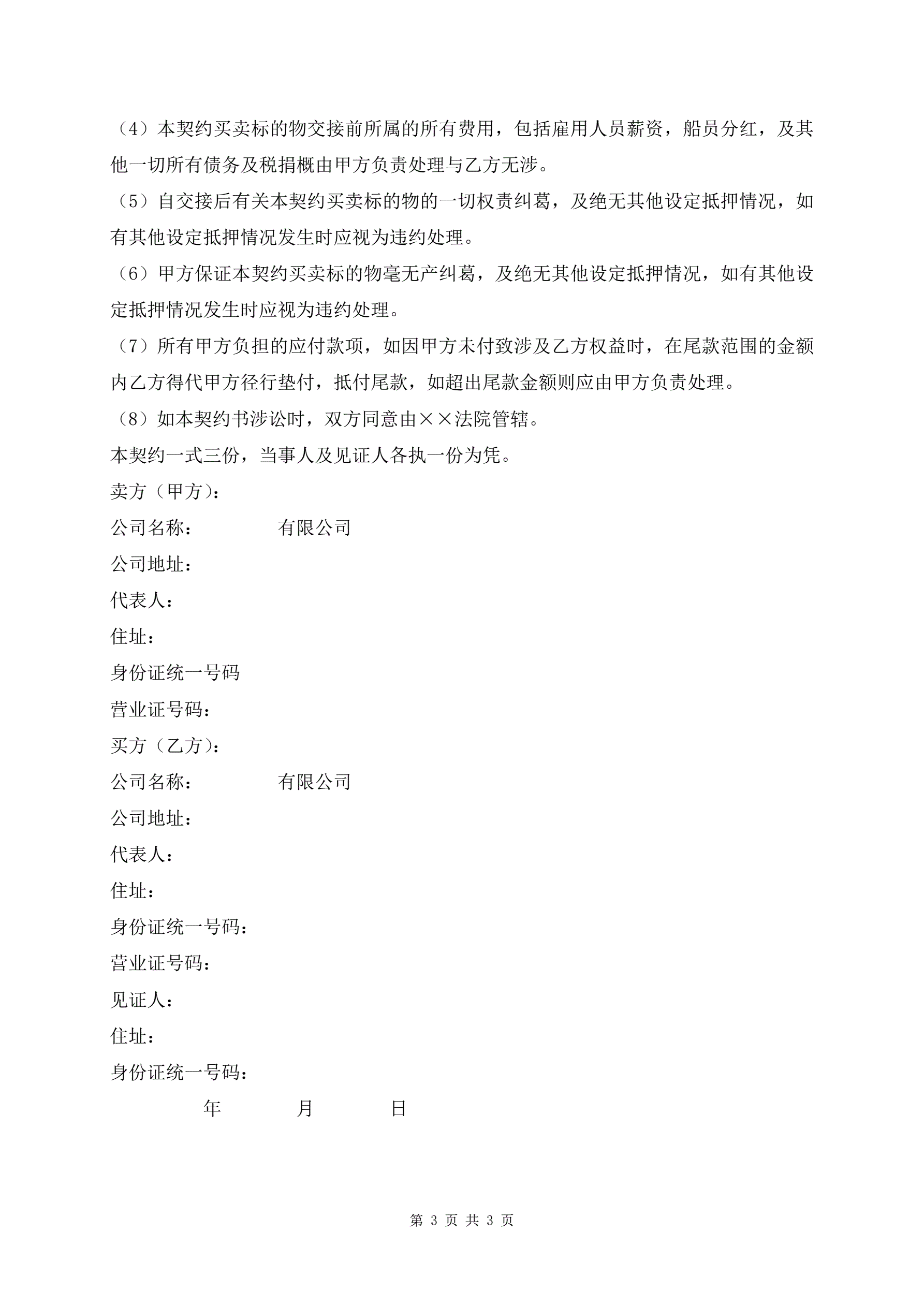 船舶买卖契约协议书