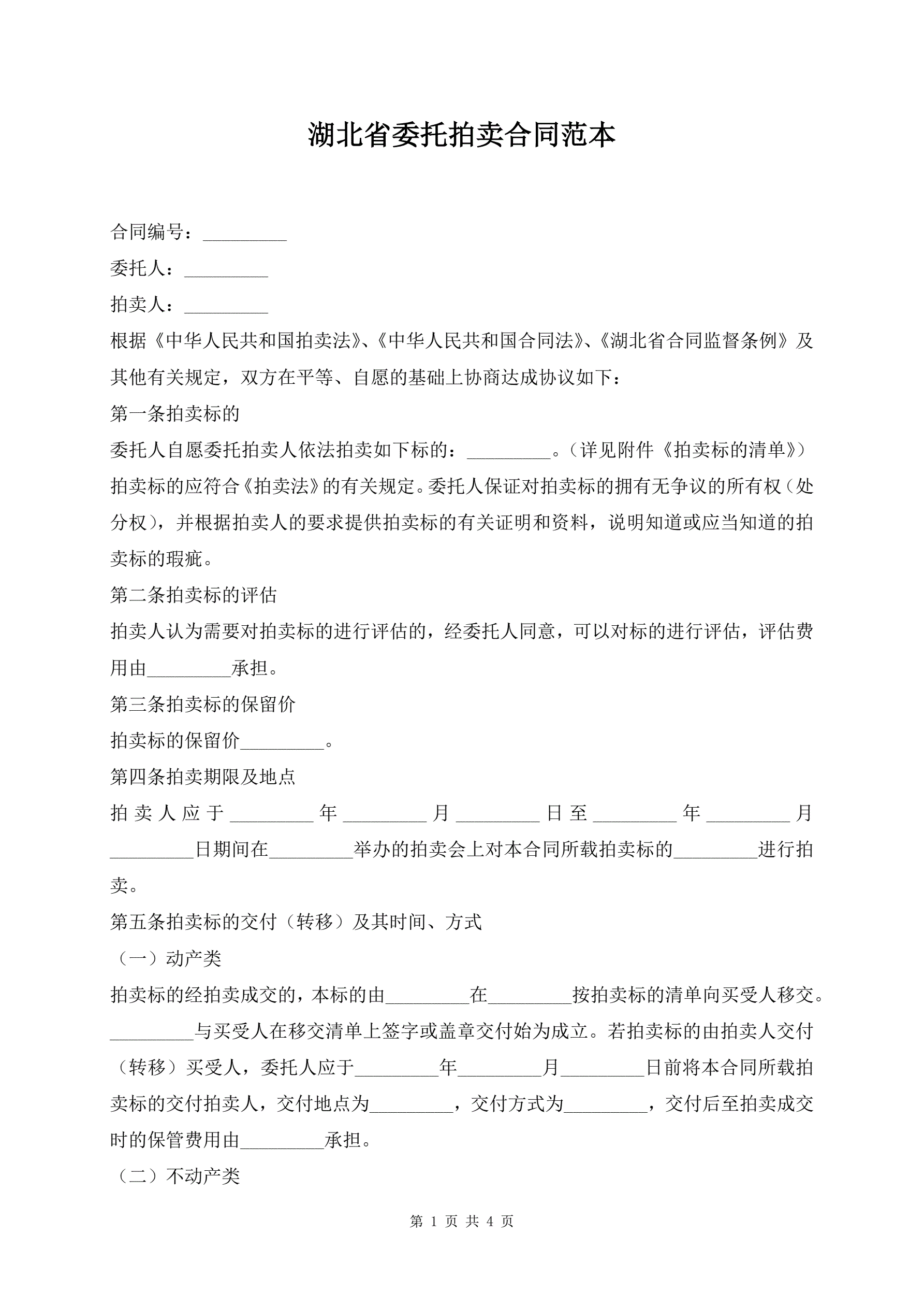 >湖北省委托拍卖合同范本