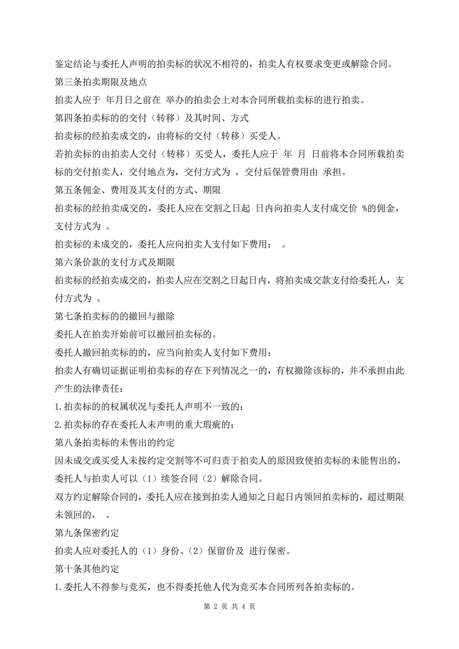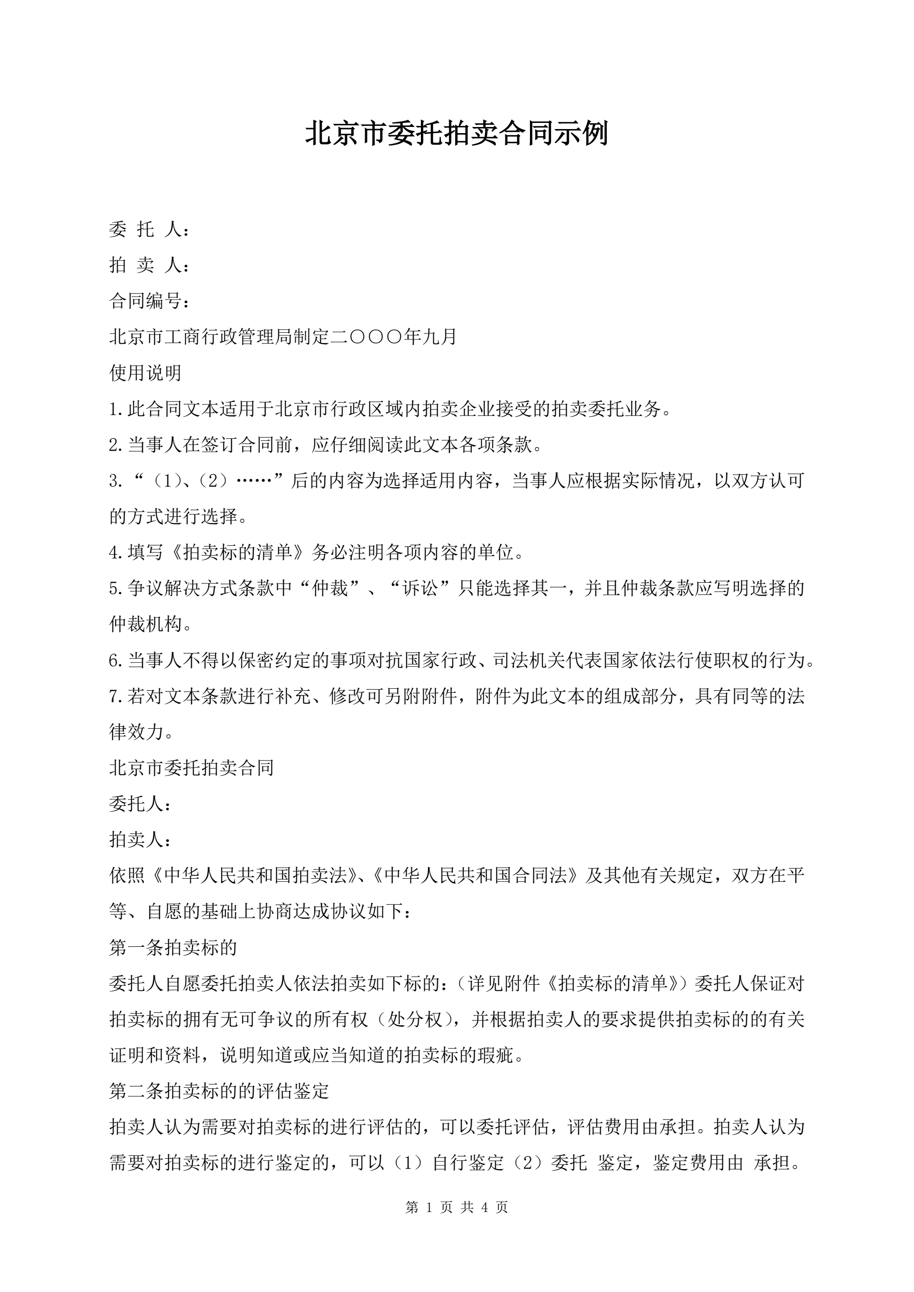 >北京市委托拍卖合同示例