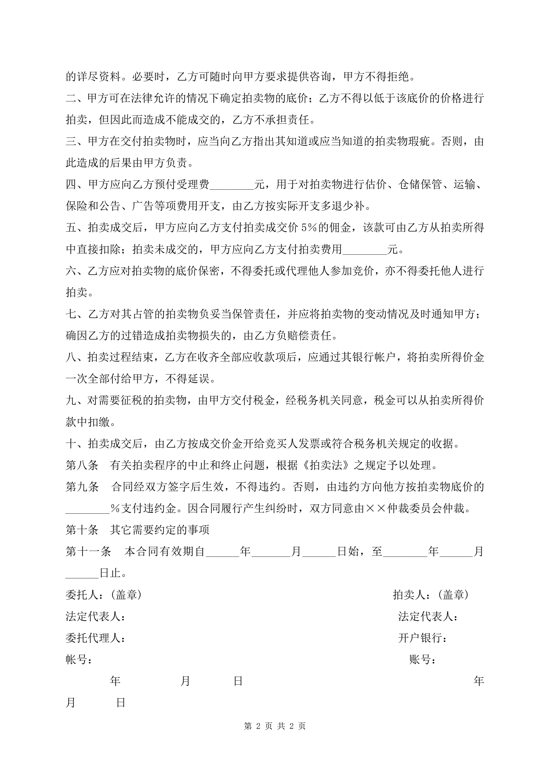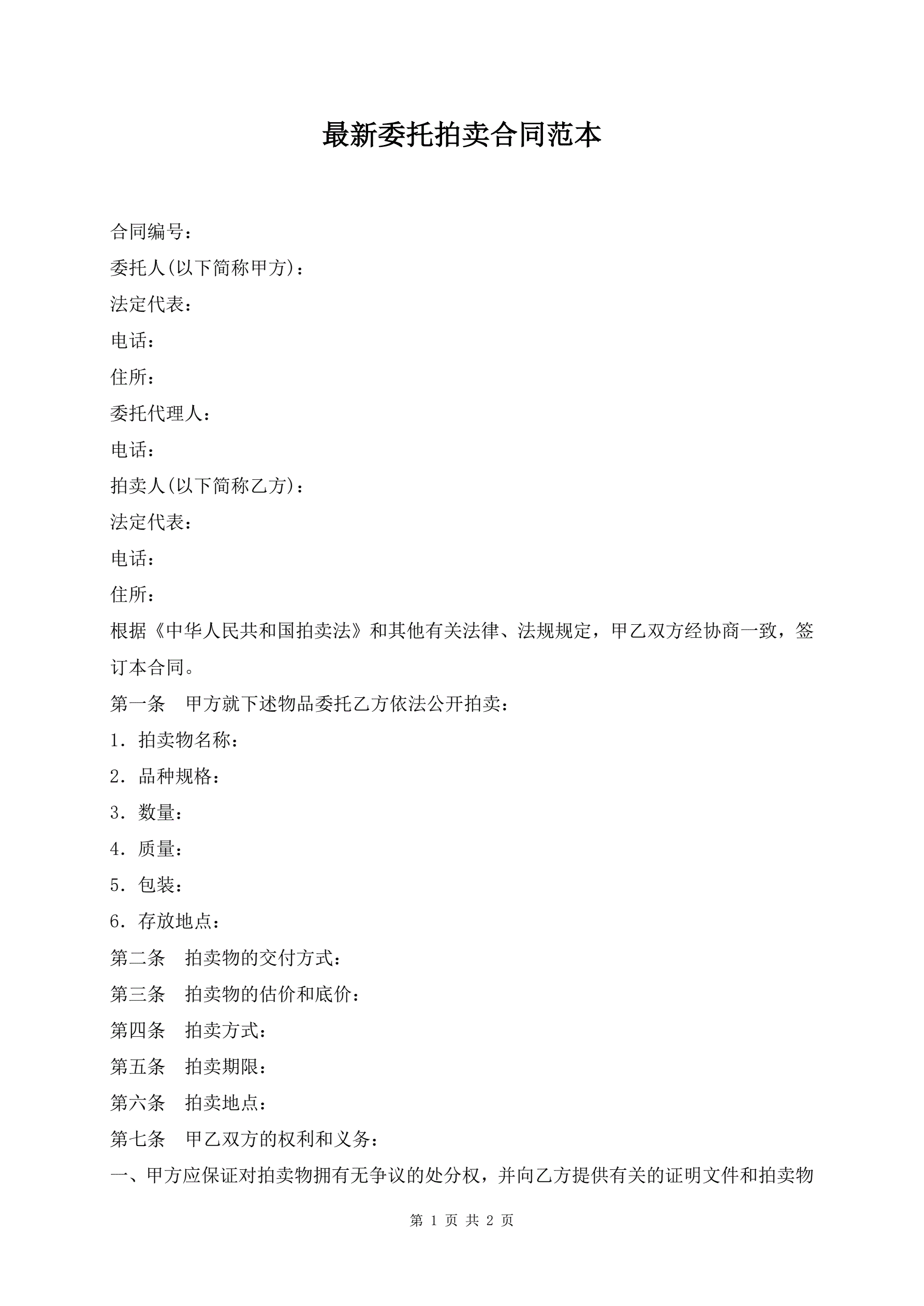 最新委托拍卖合同范本