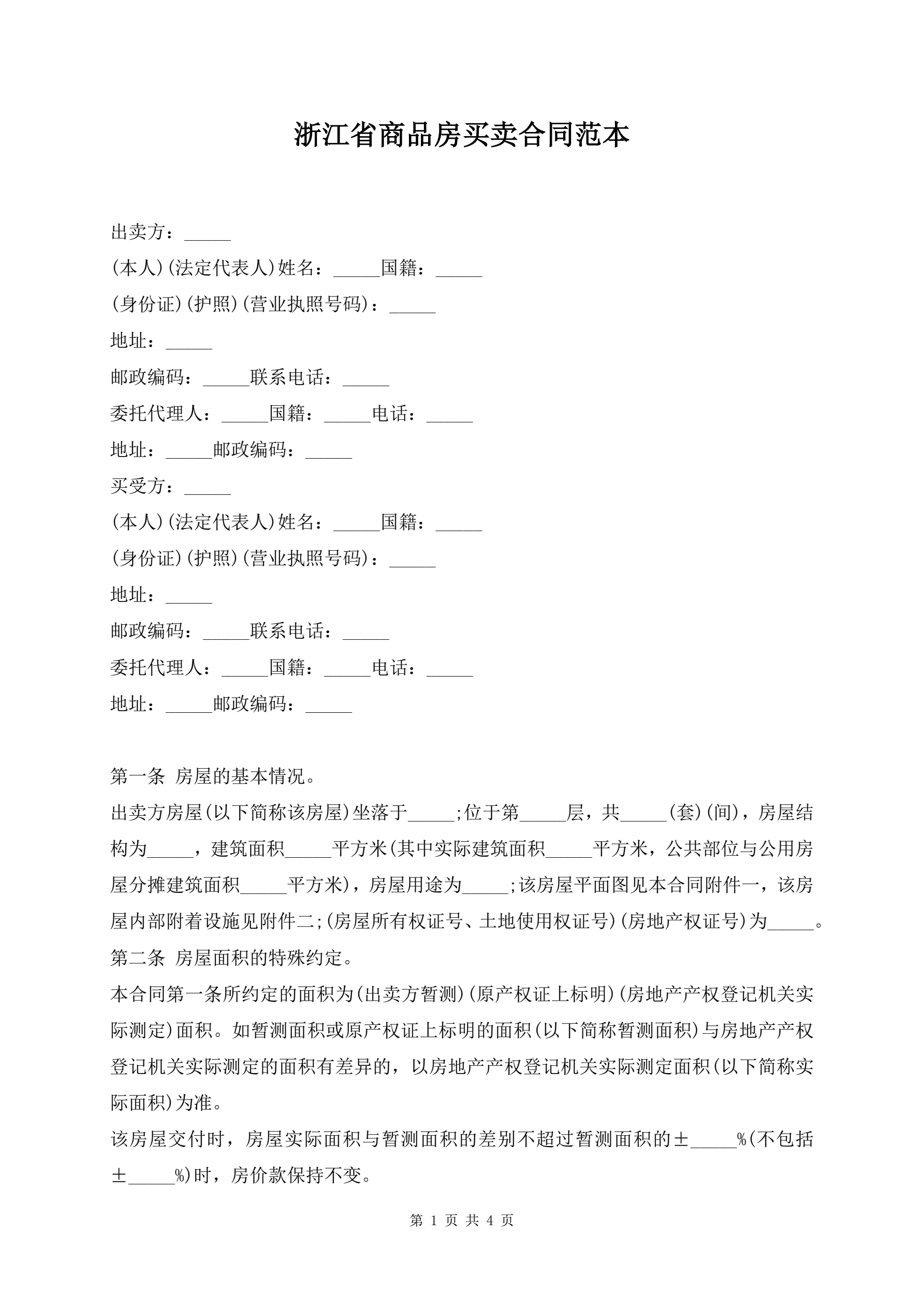 >浙江省商品房买卖合同范本