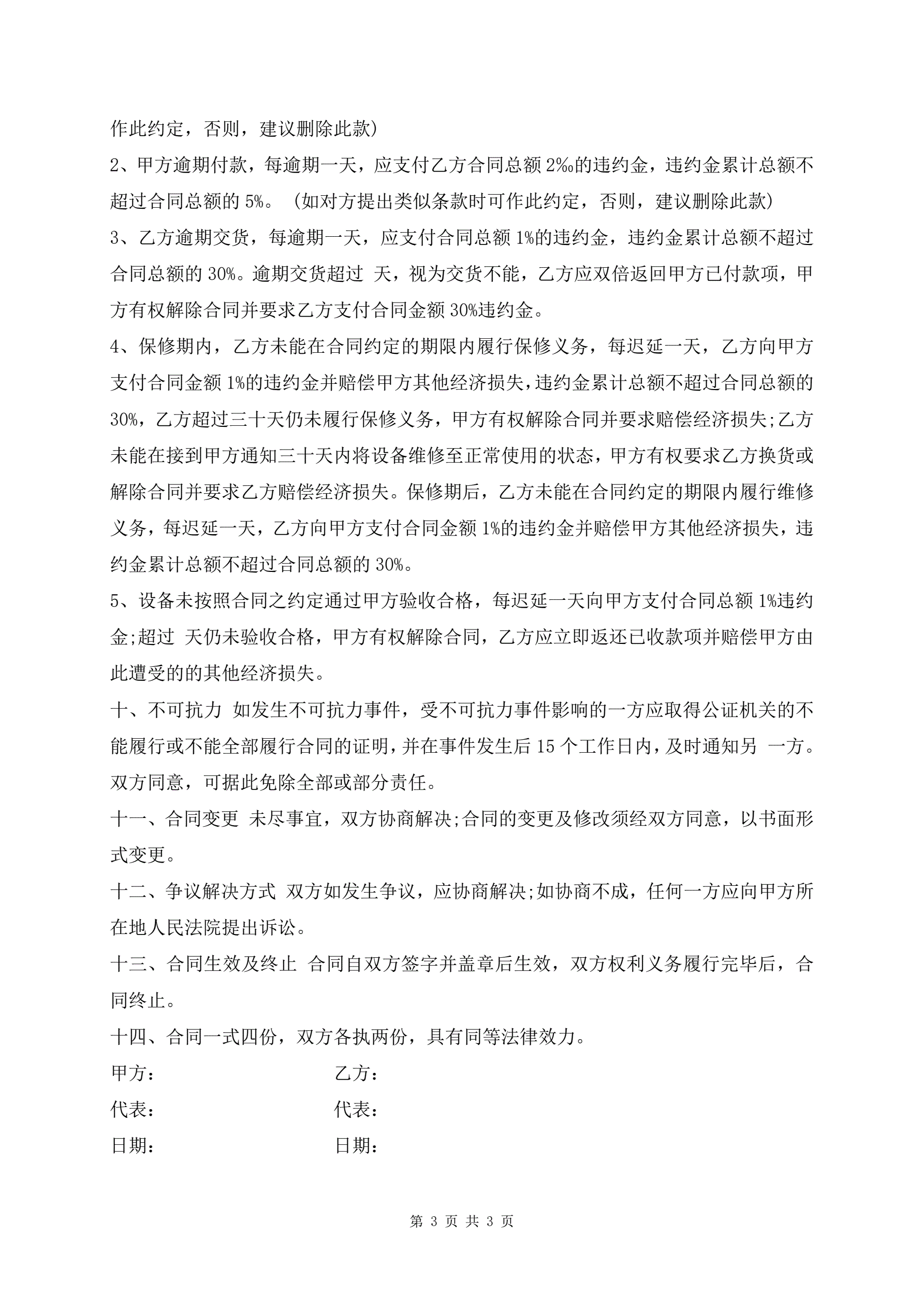 机械设备采购协议通用版模板