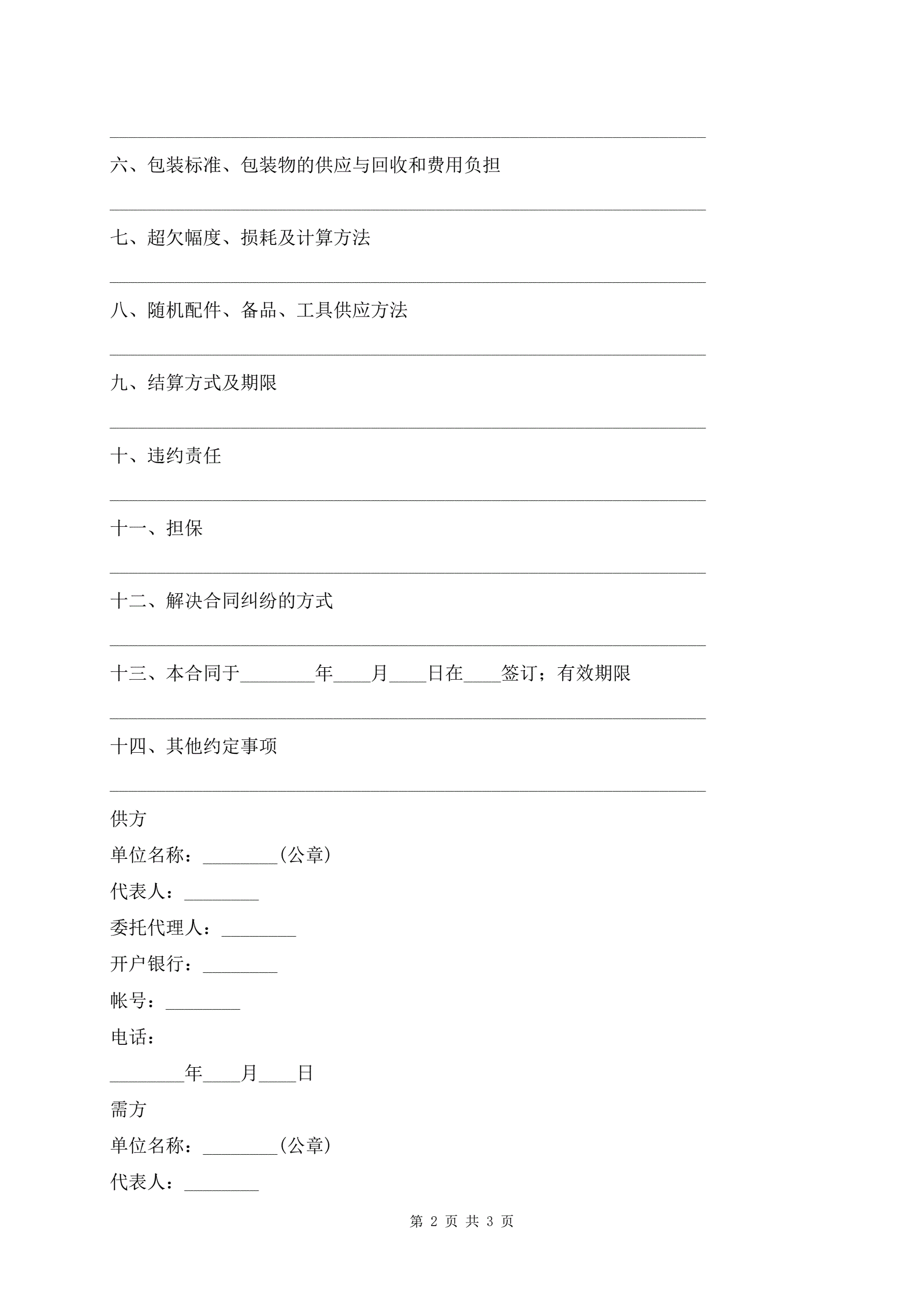 >工矿产品订货合同