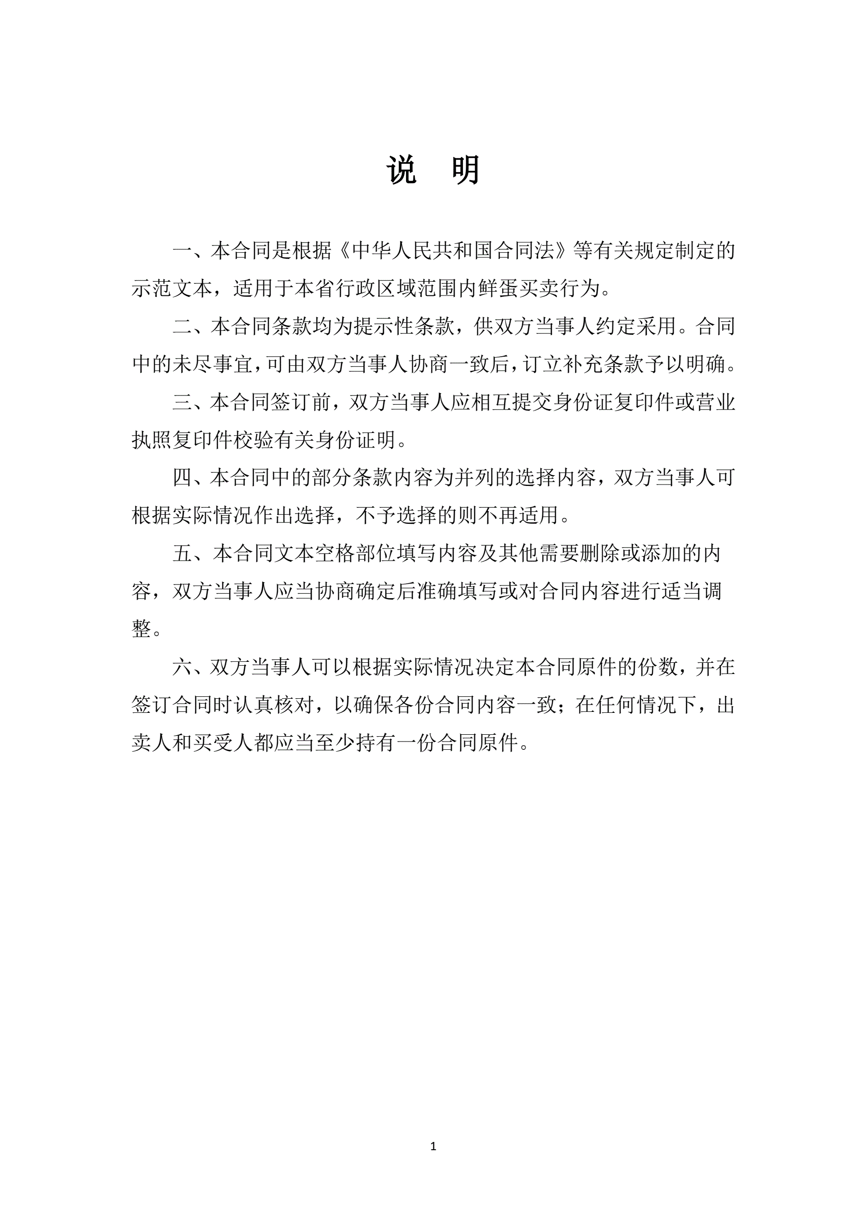 修订山西省鲜蛋买卖合同JF-05