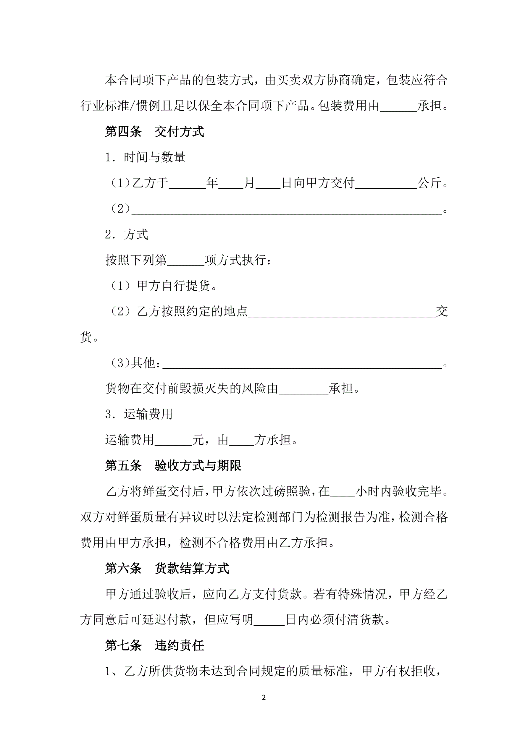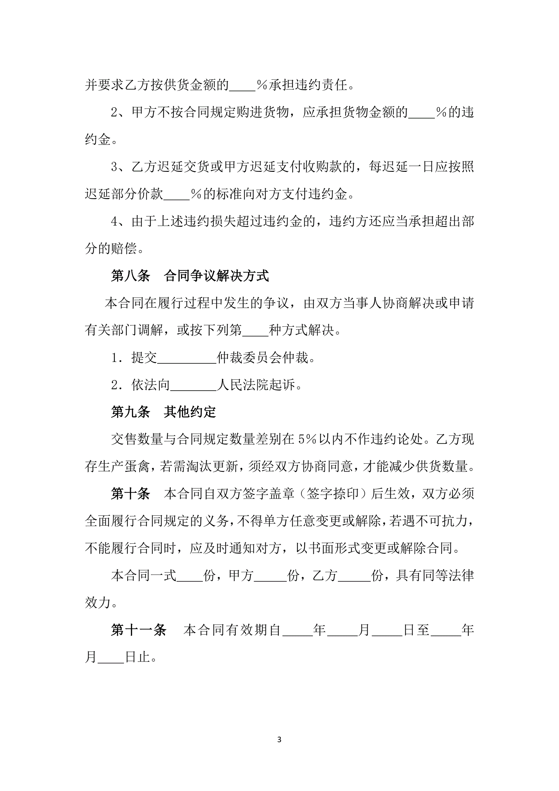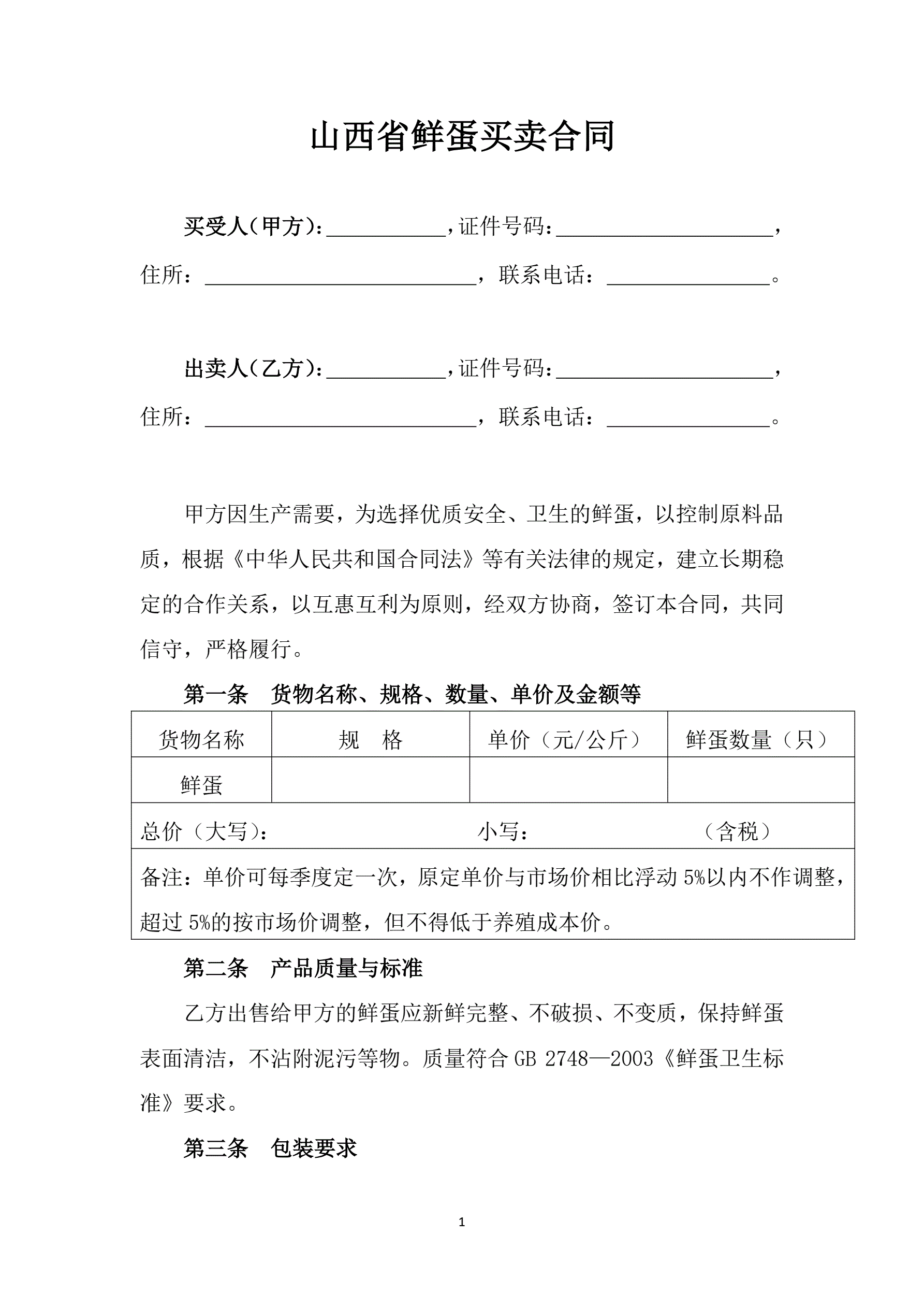 >修订山西省鲜蛋买卖合同JF-05