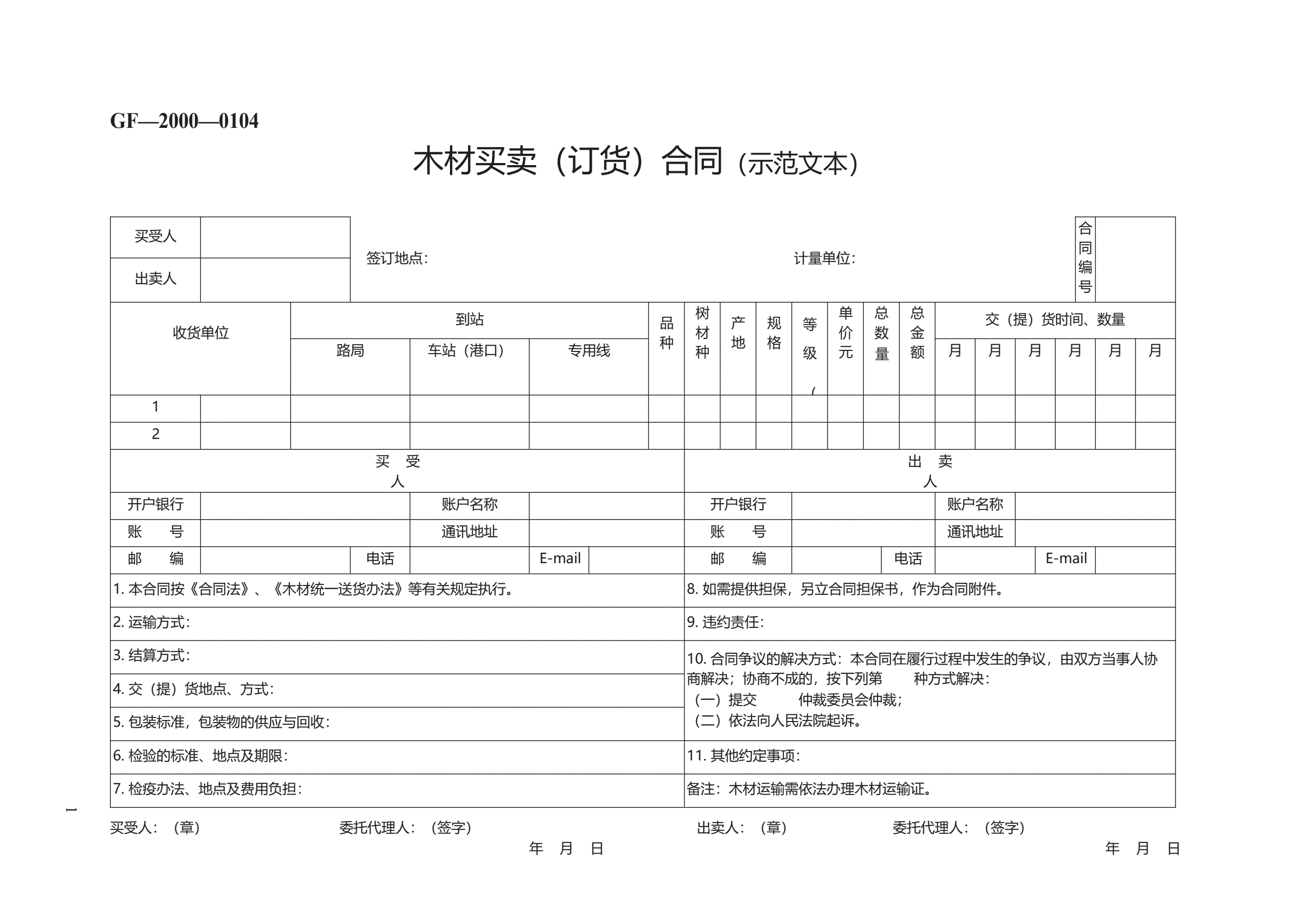 木材买卖(订货)合同(示范文本) GF—2000—0104