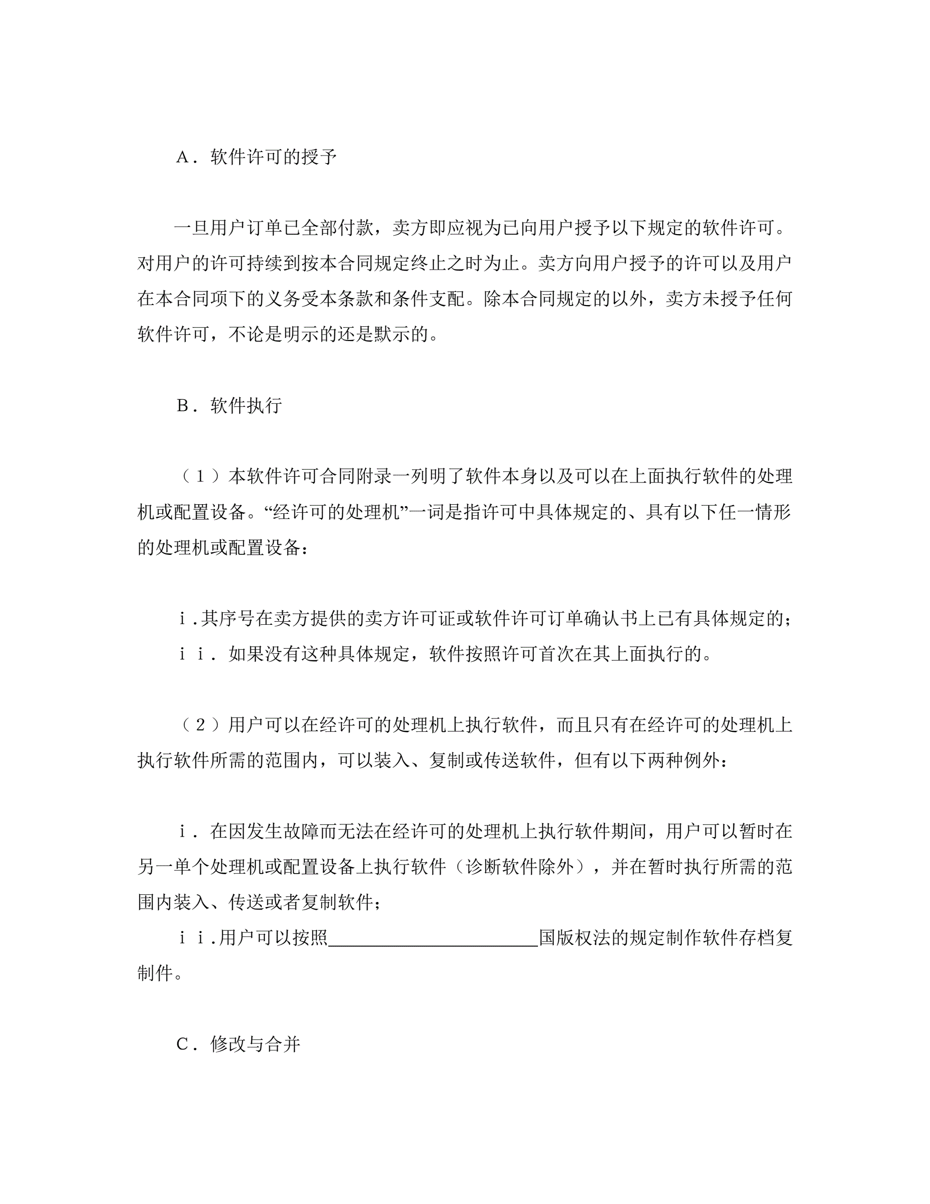 >国际计算机软件许可合同格式
