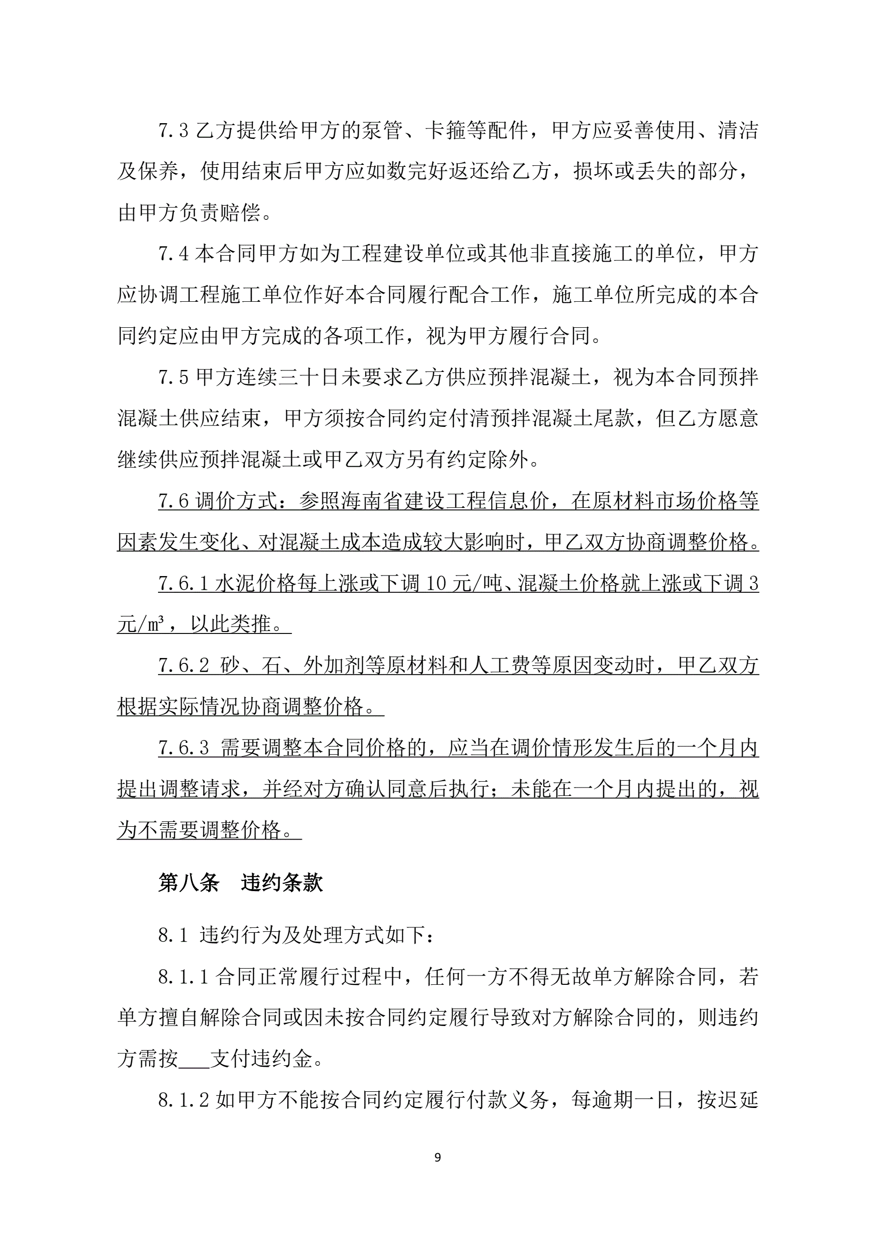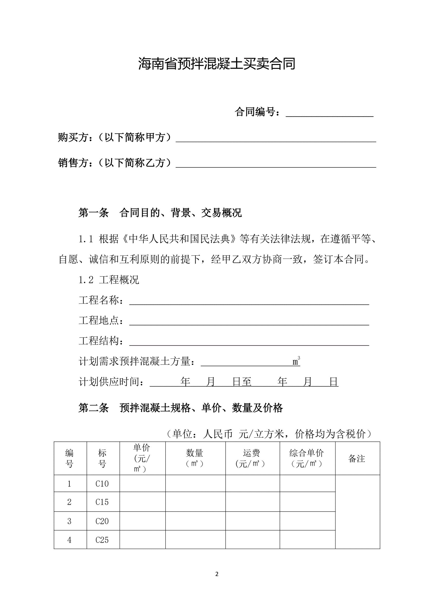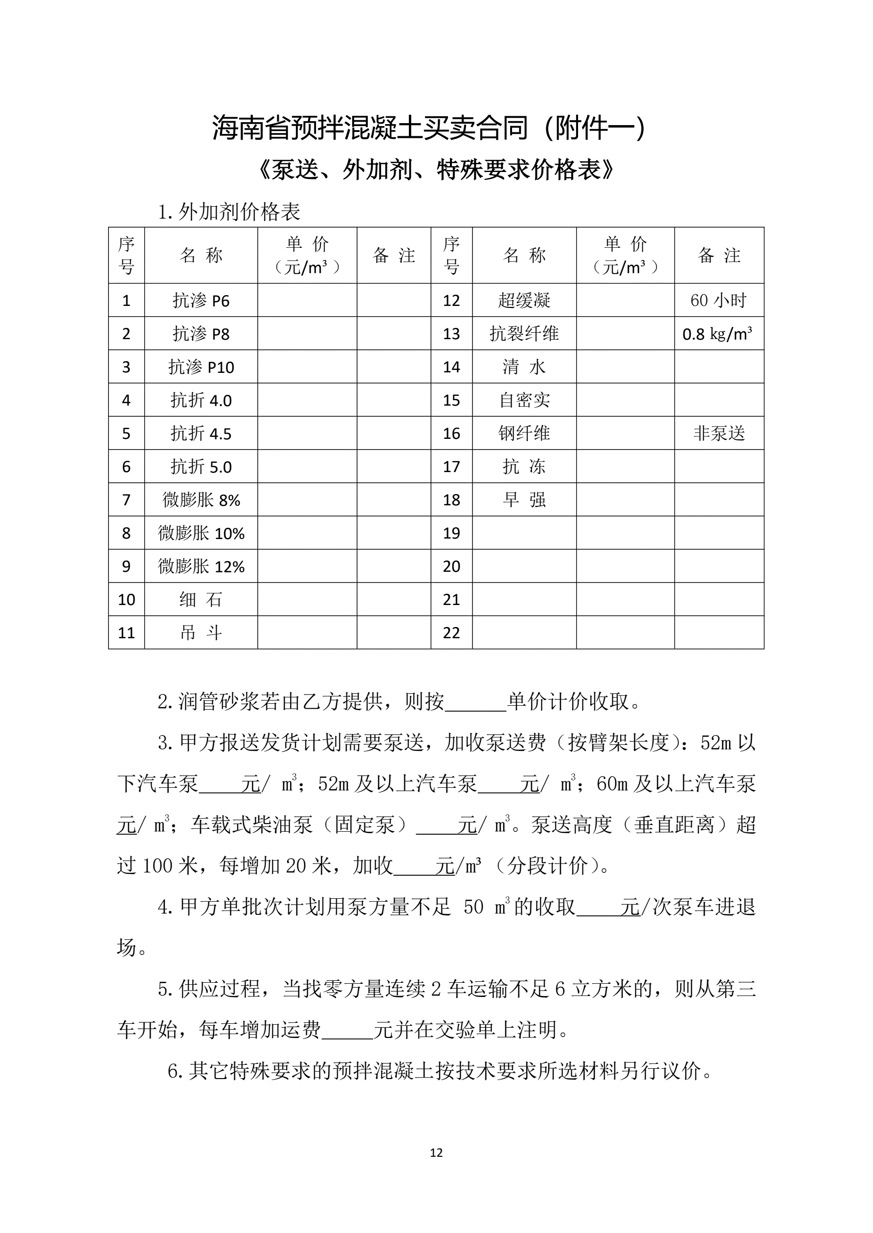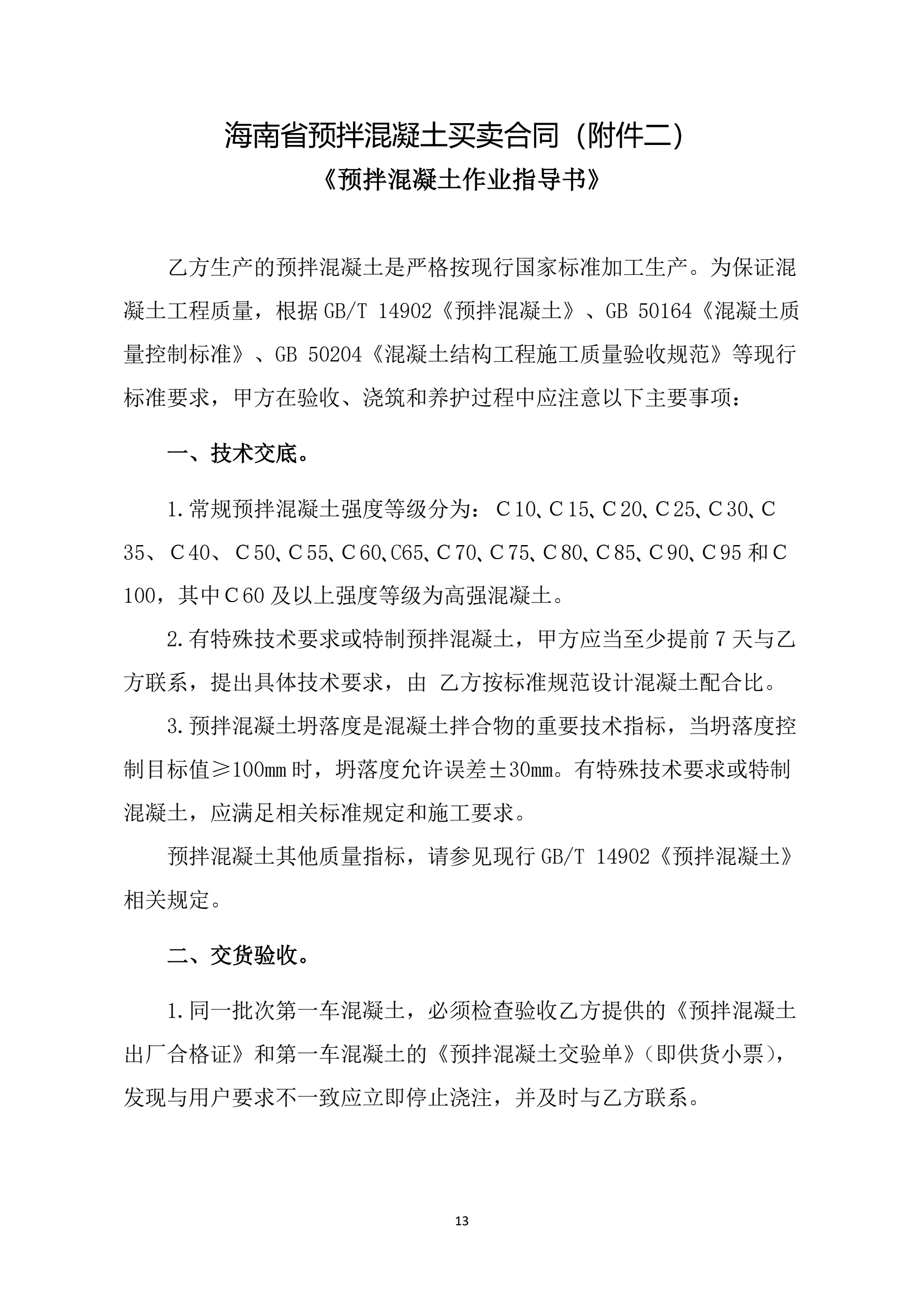 附件3海南省预拌混凝土买卖合同(示范文本)
