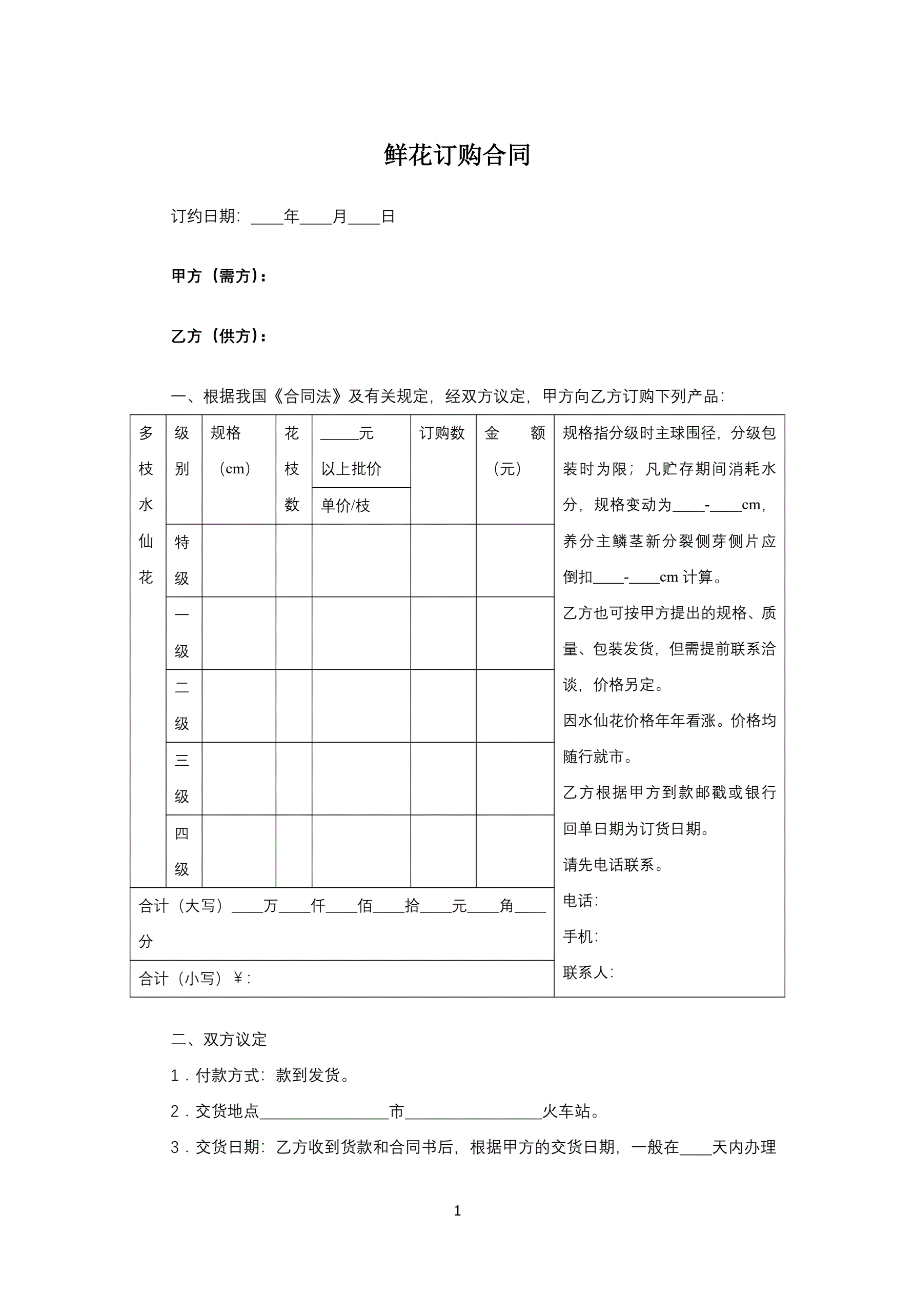 >鲜花订购合同