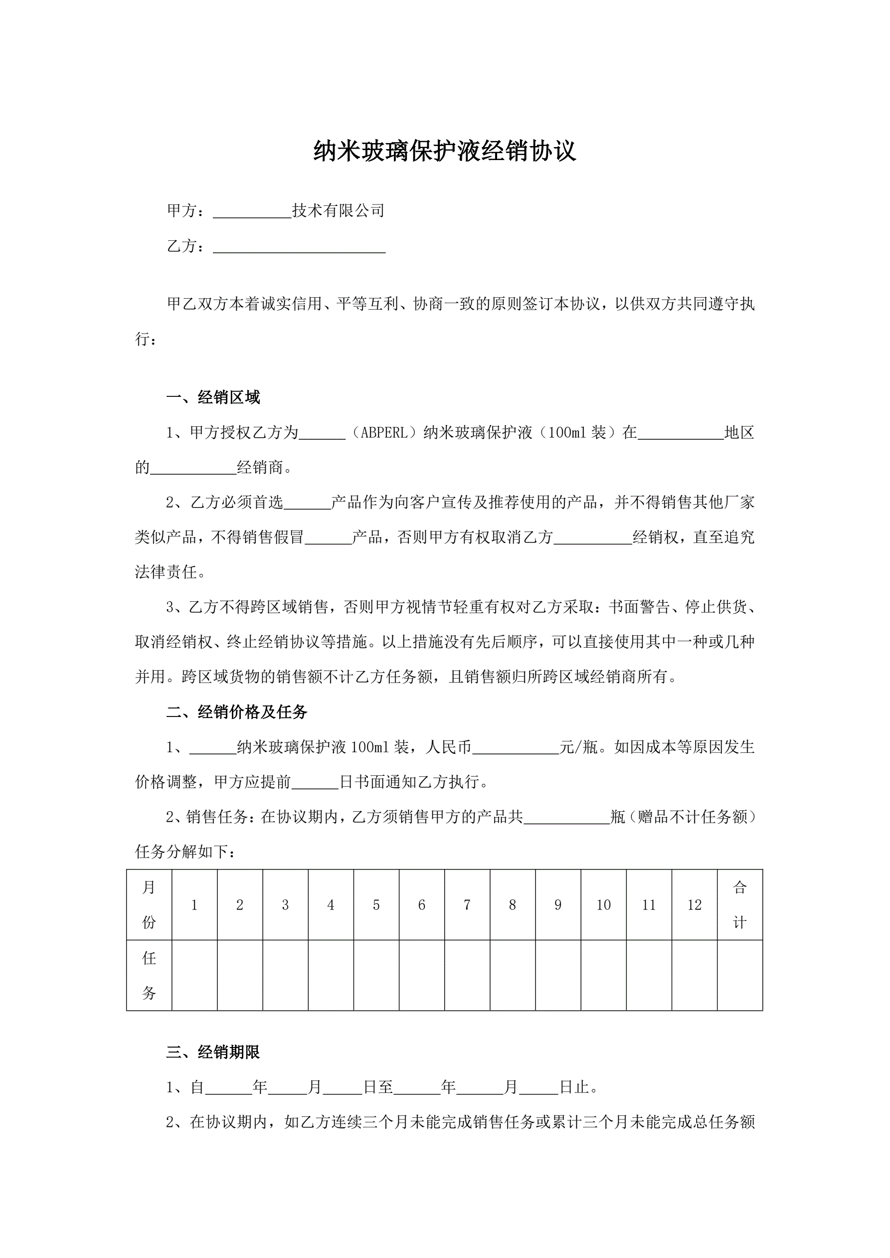>纳米玻璃保护液经销协议
