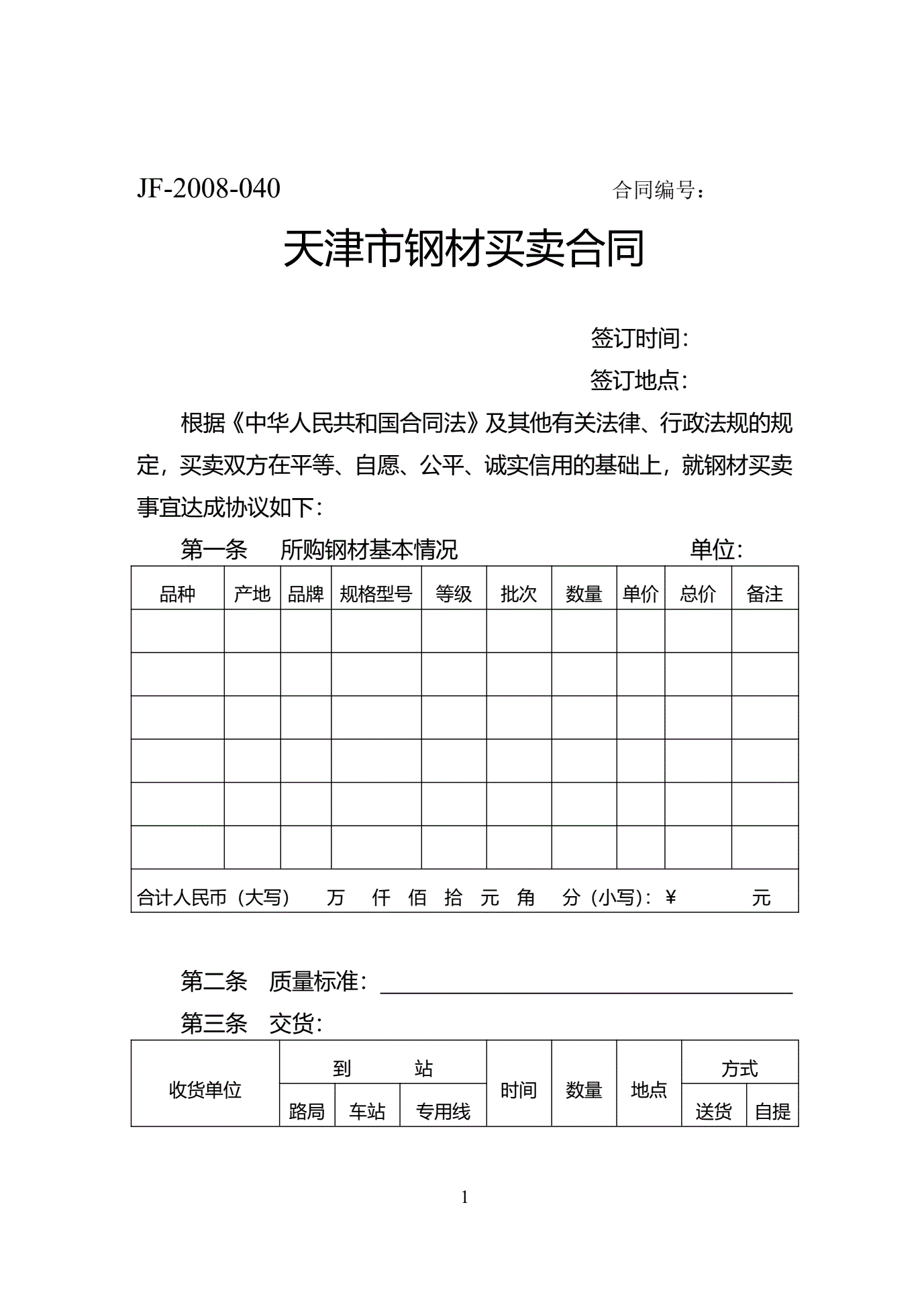 天津市钢材买卖合同