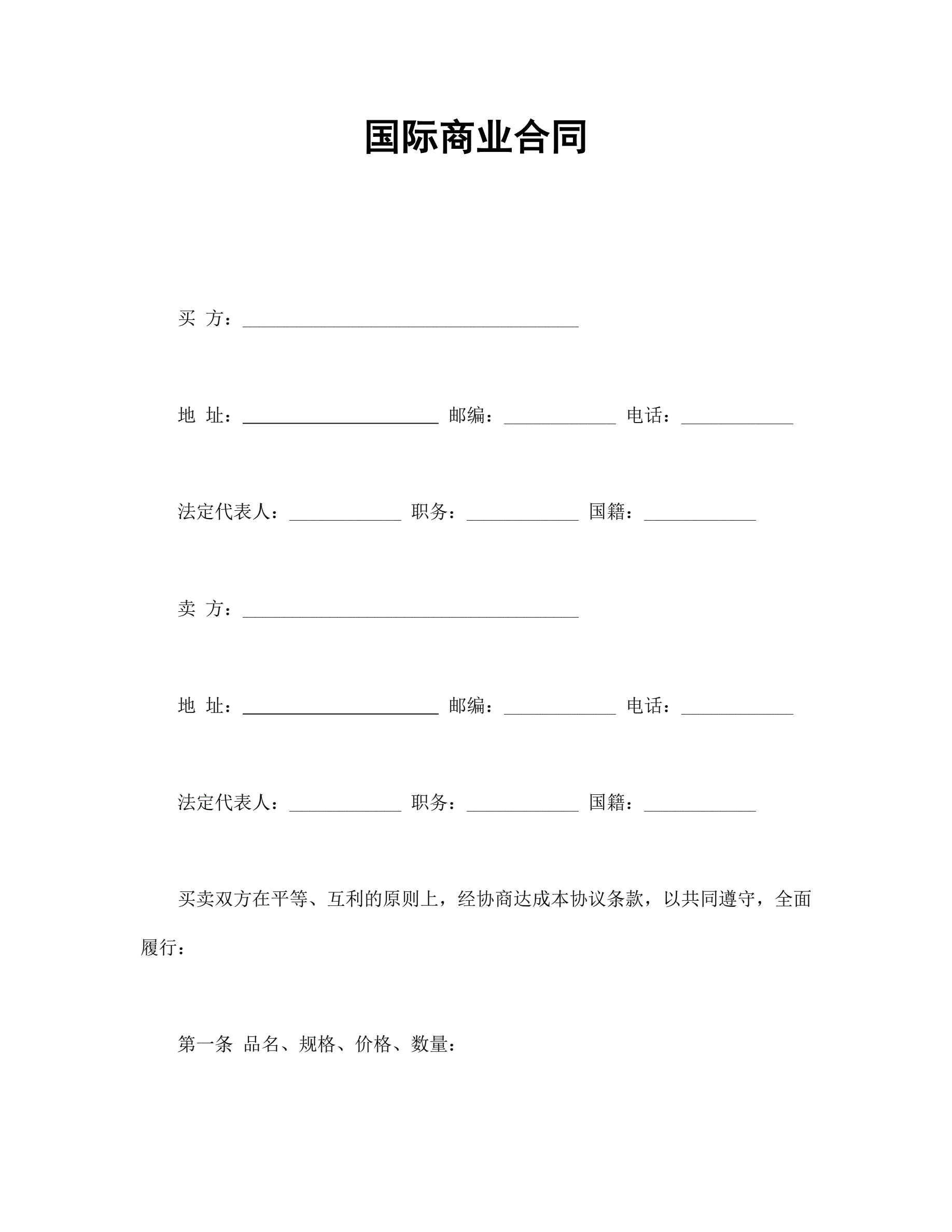 >国际商业合同