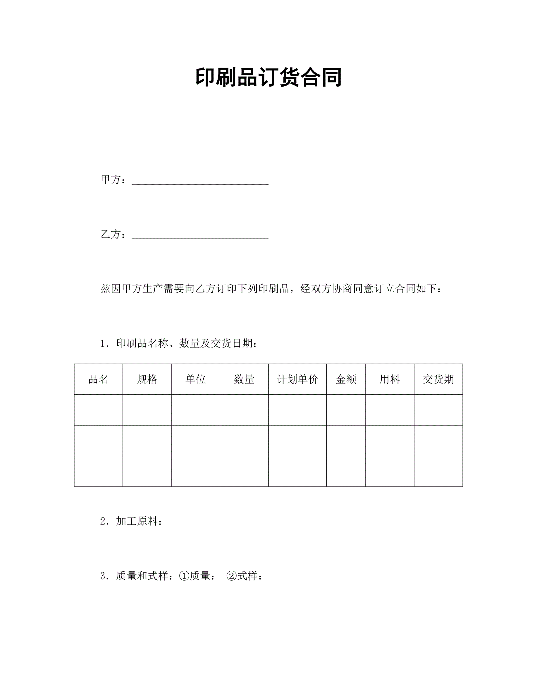 印刷品订货合同