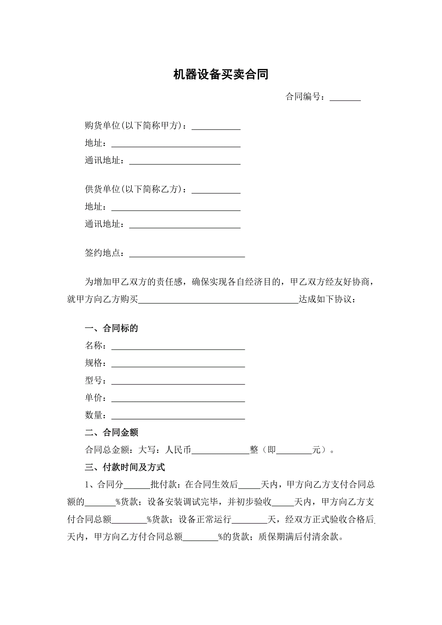 机器设备买卖合同