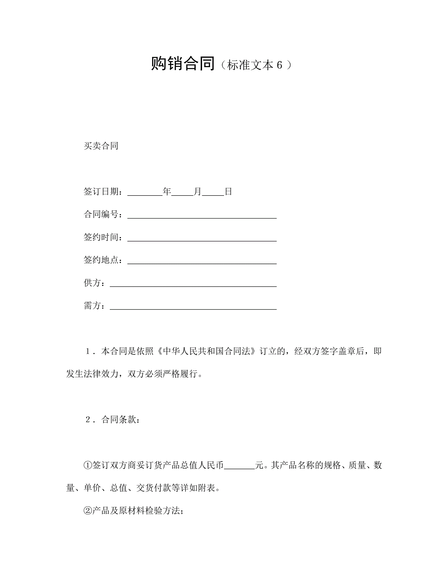 >购销合同(标准文本6)