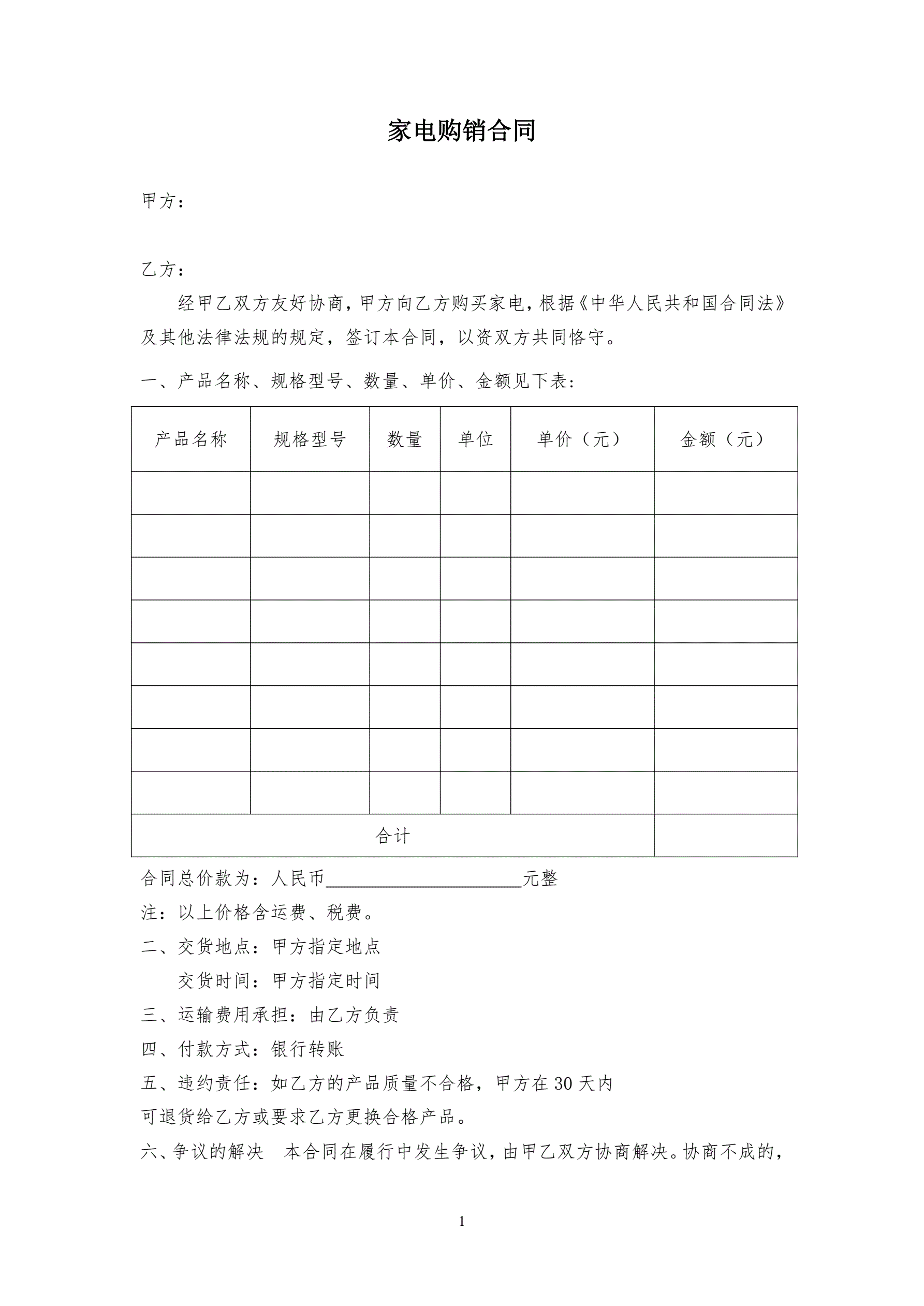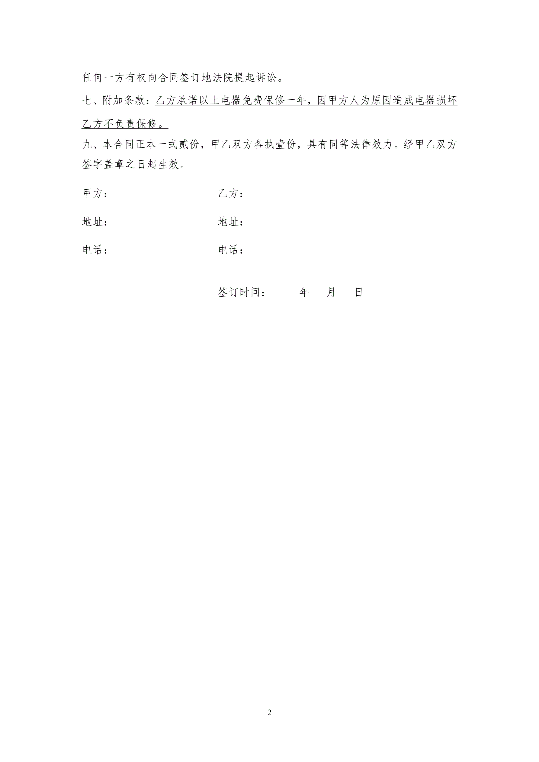 家电购买合同模板
