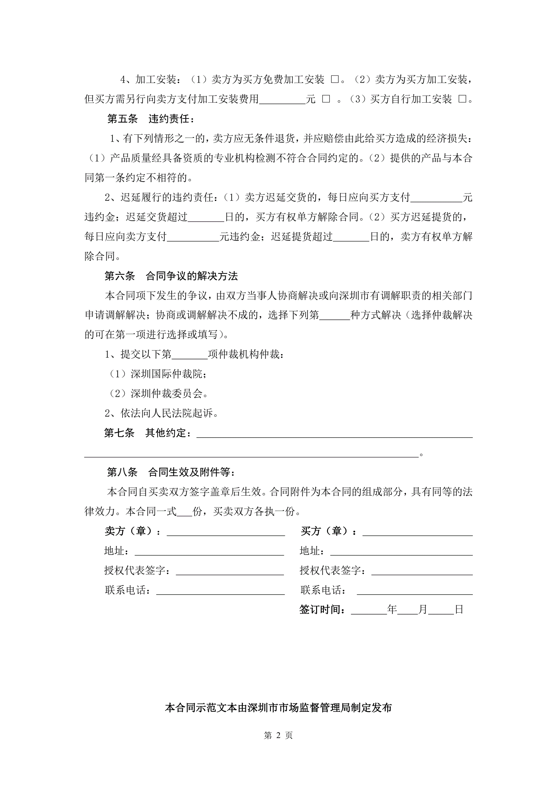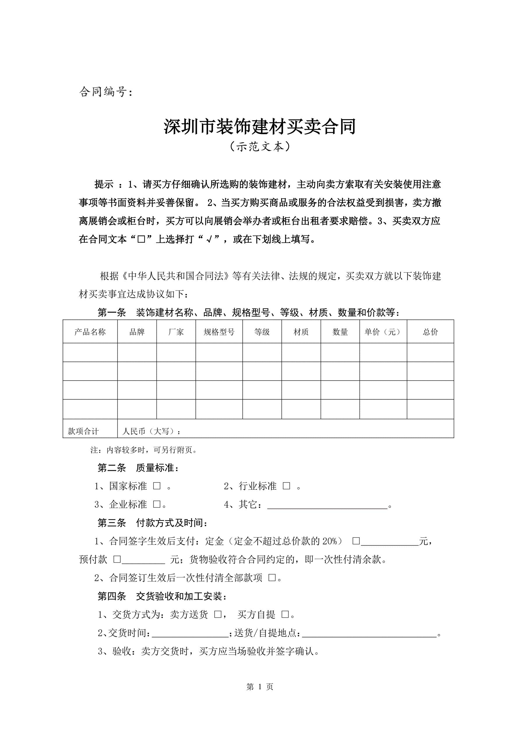 >8、深圳市装饰建材买卖合同(示范文本)