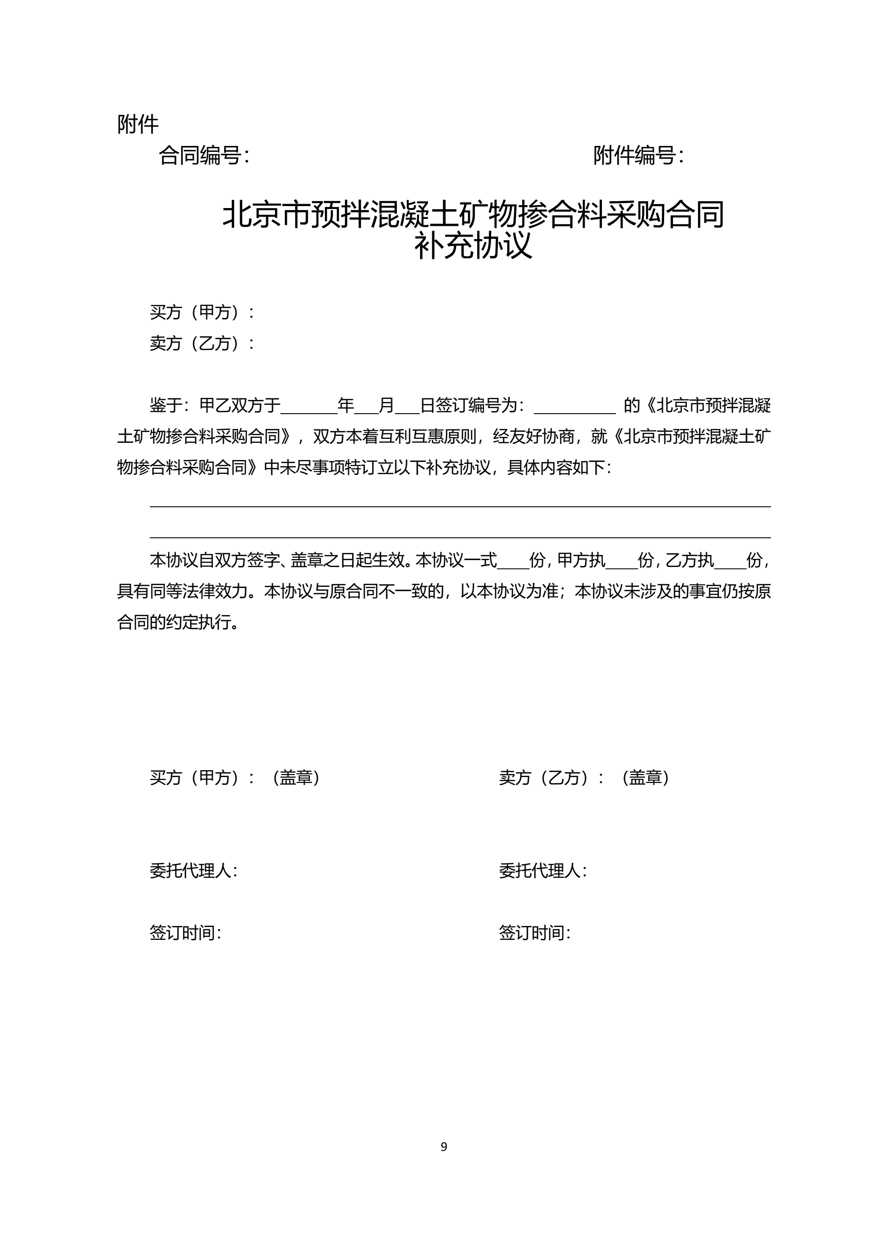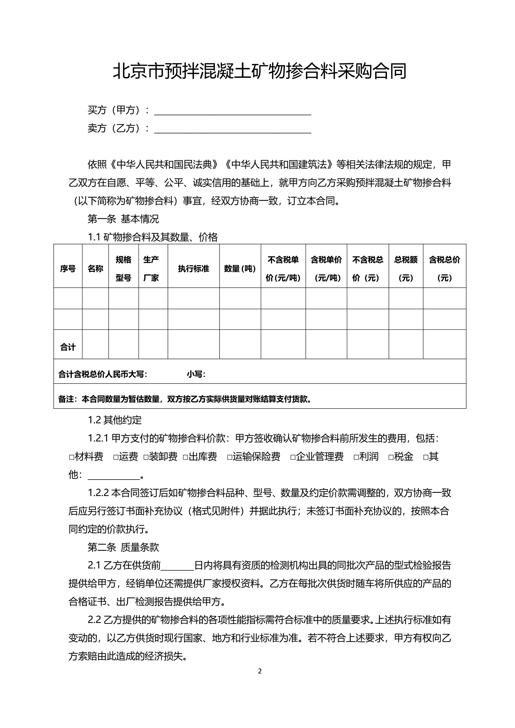 >北京市预拌混凝土矿物掺合料采购合同
