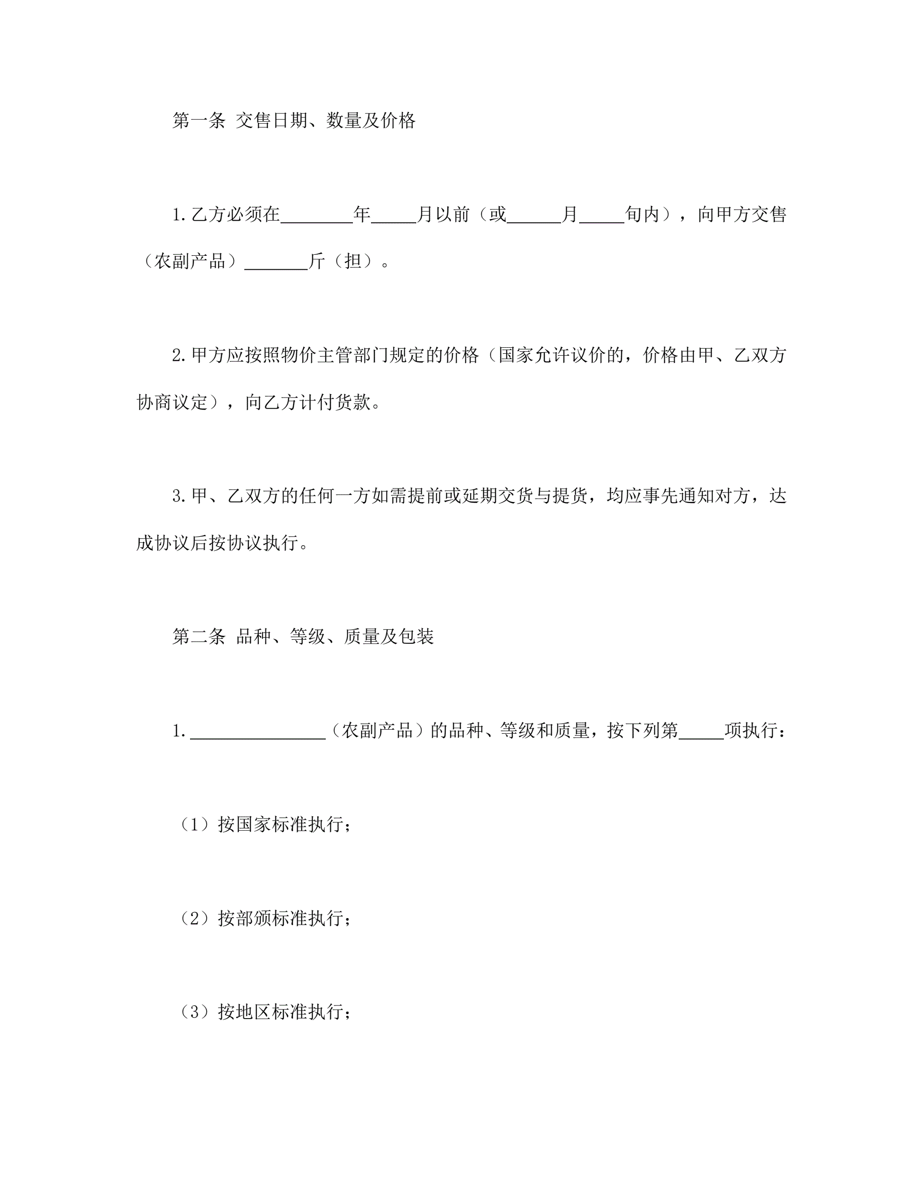 农副产品购销合同