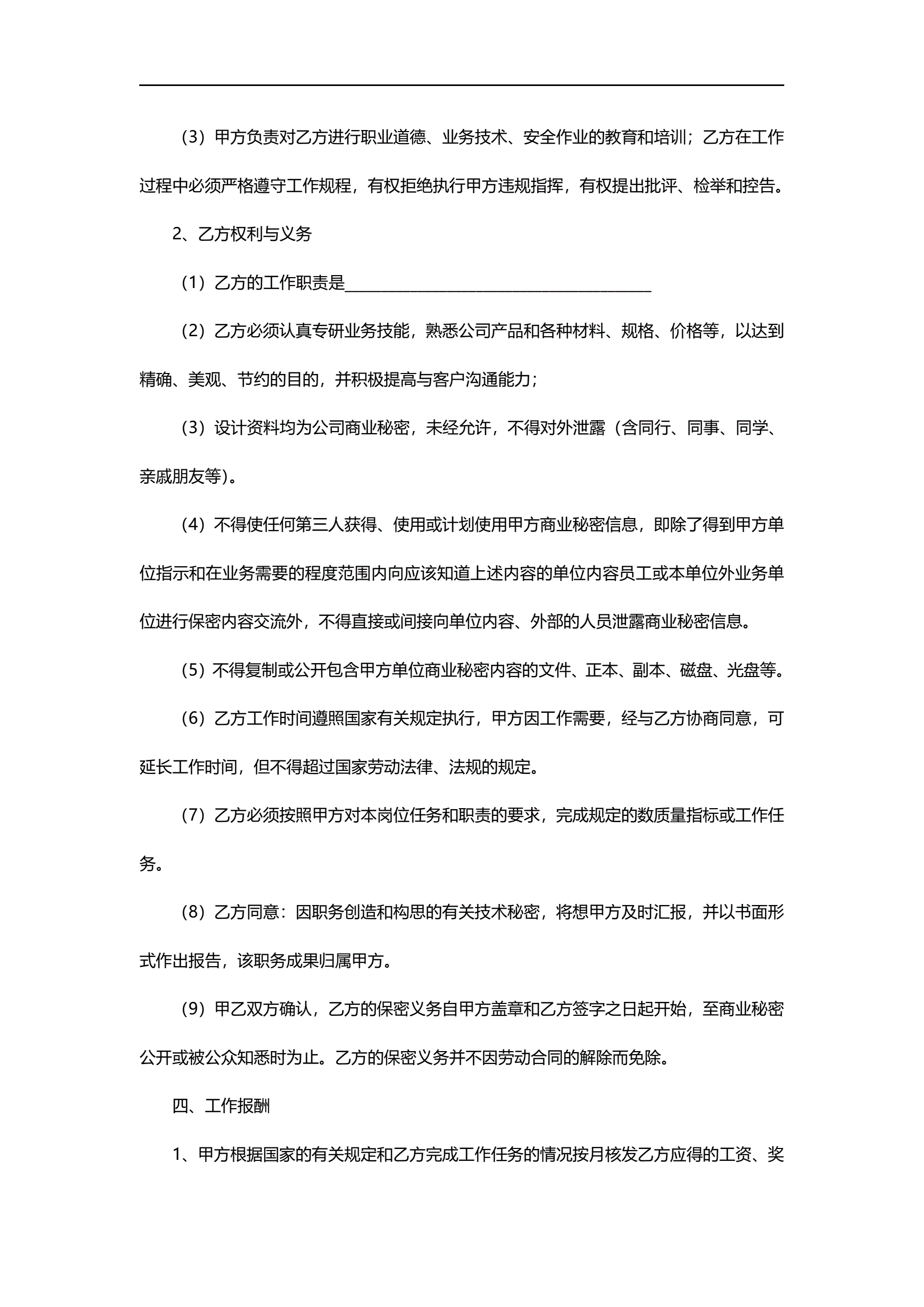 待岗协议