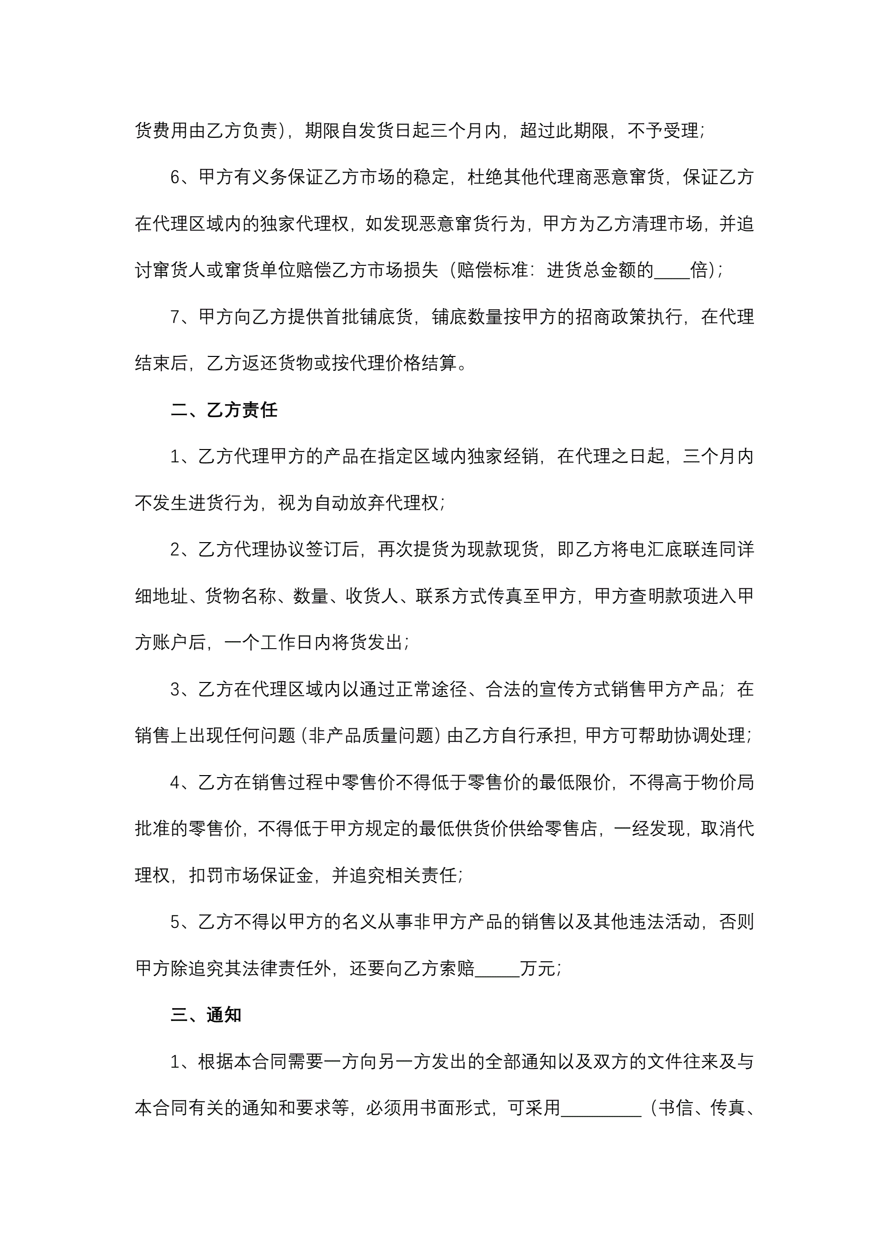 产品代理经销协议