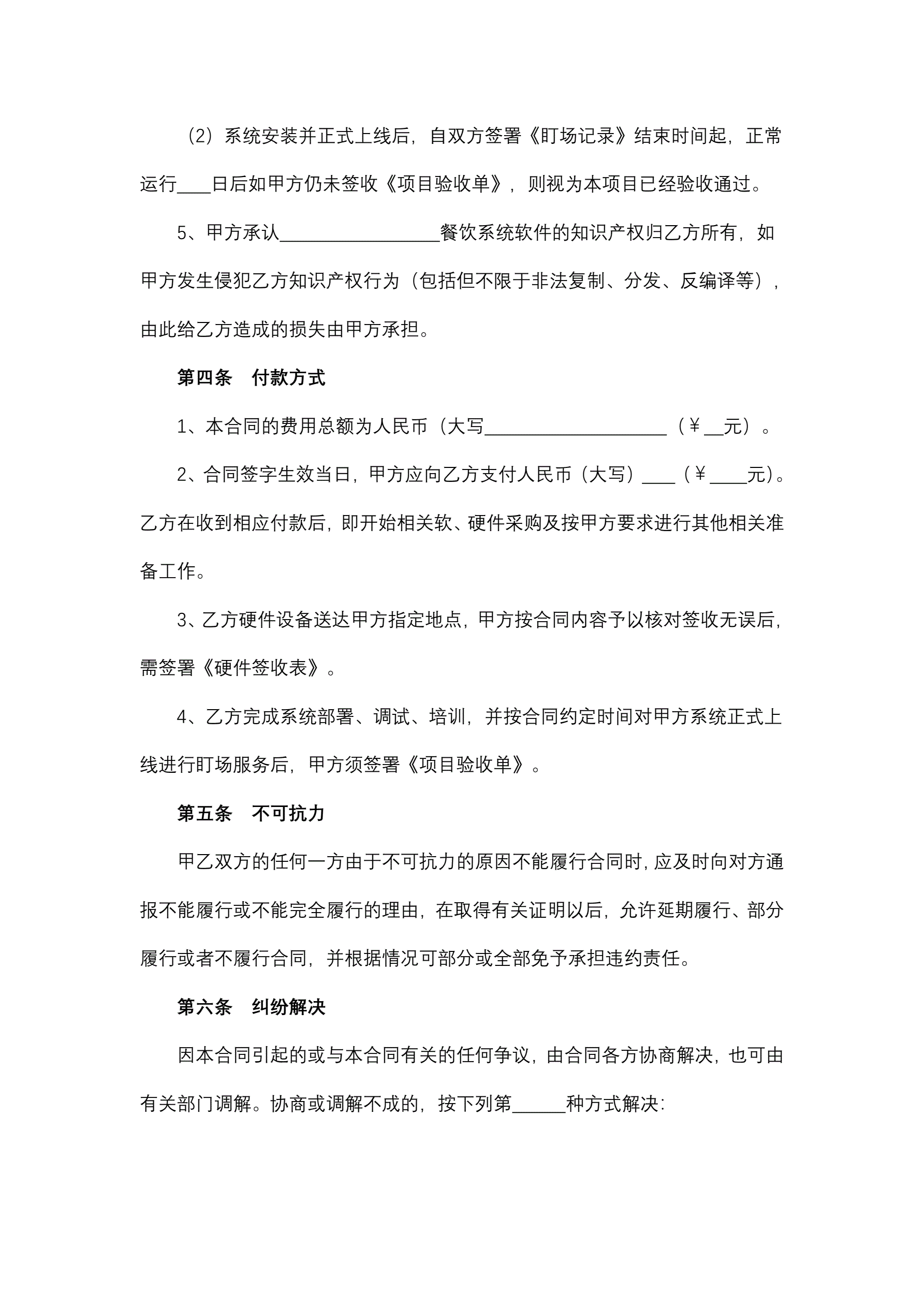 餐饮软件买卖合同