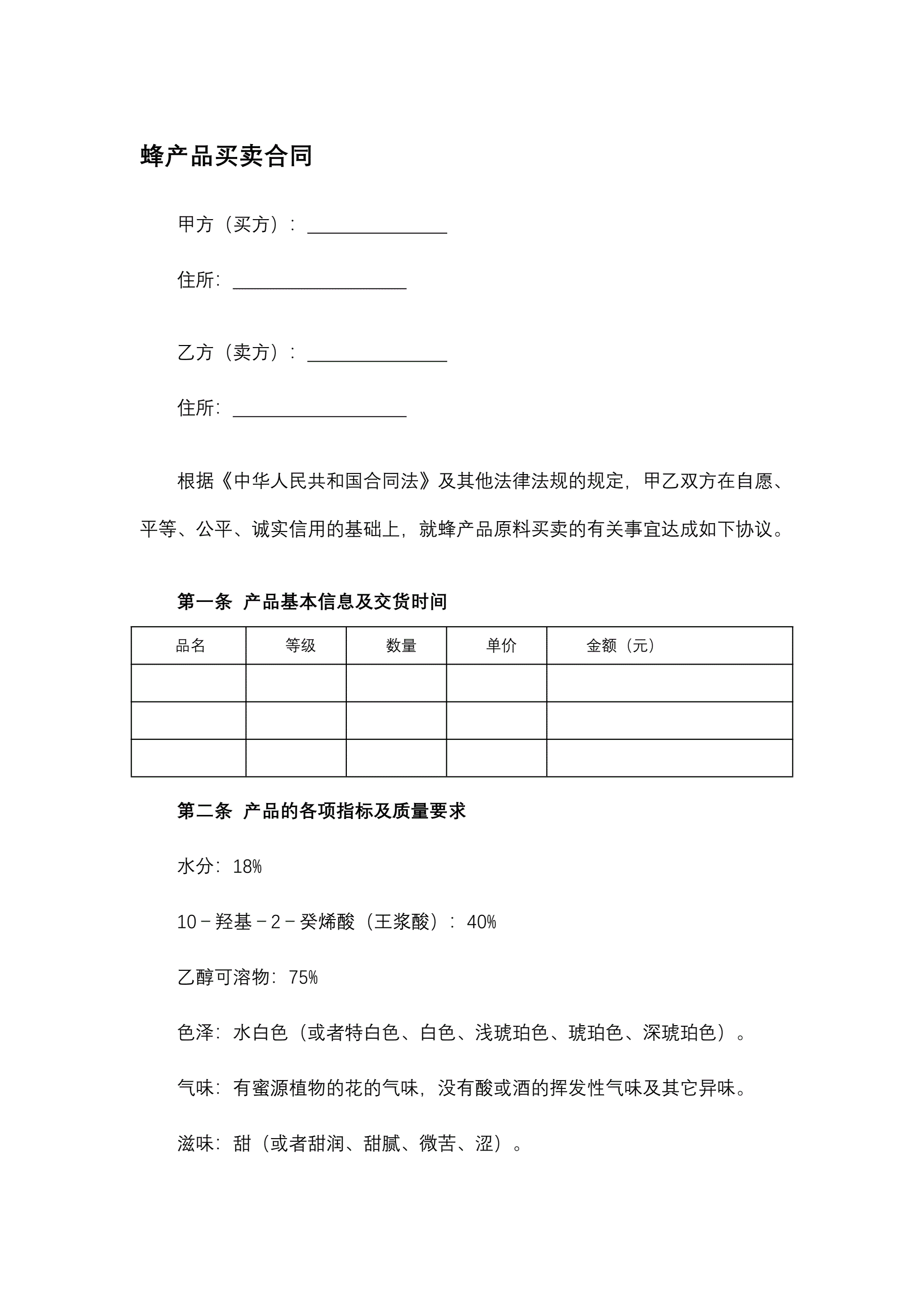 蜂产品买卖合同