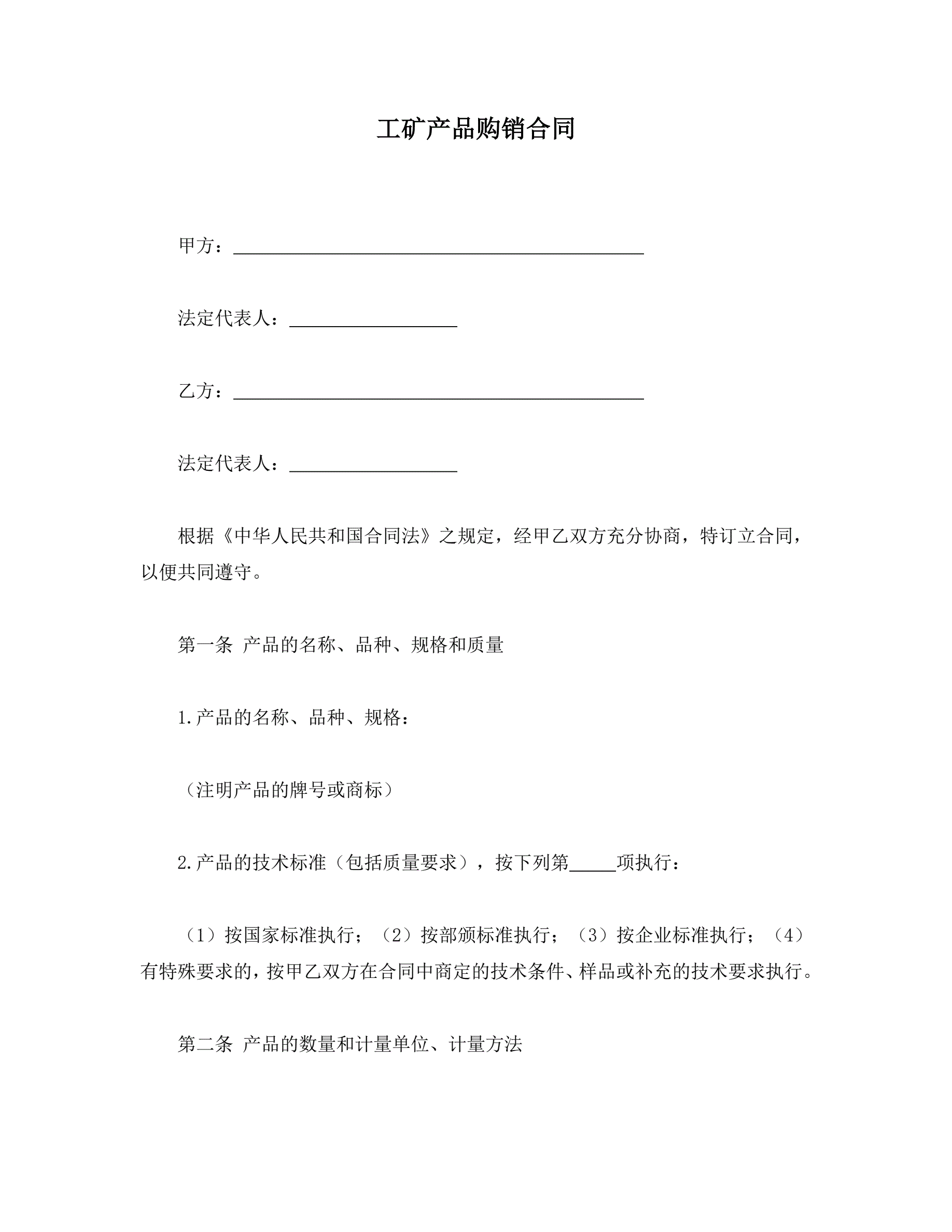 >工矿产品购销合同(1)