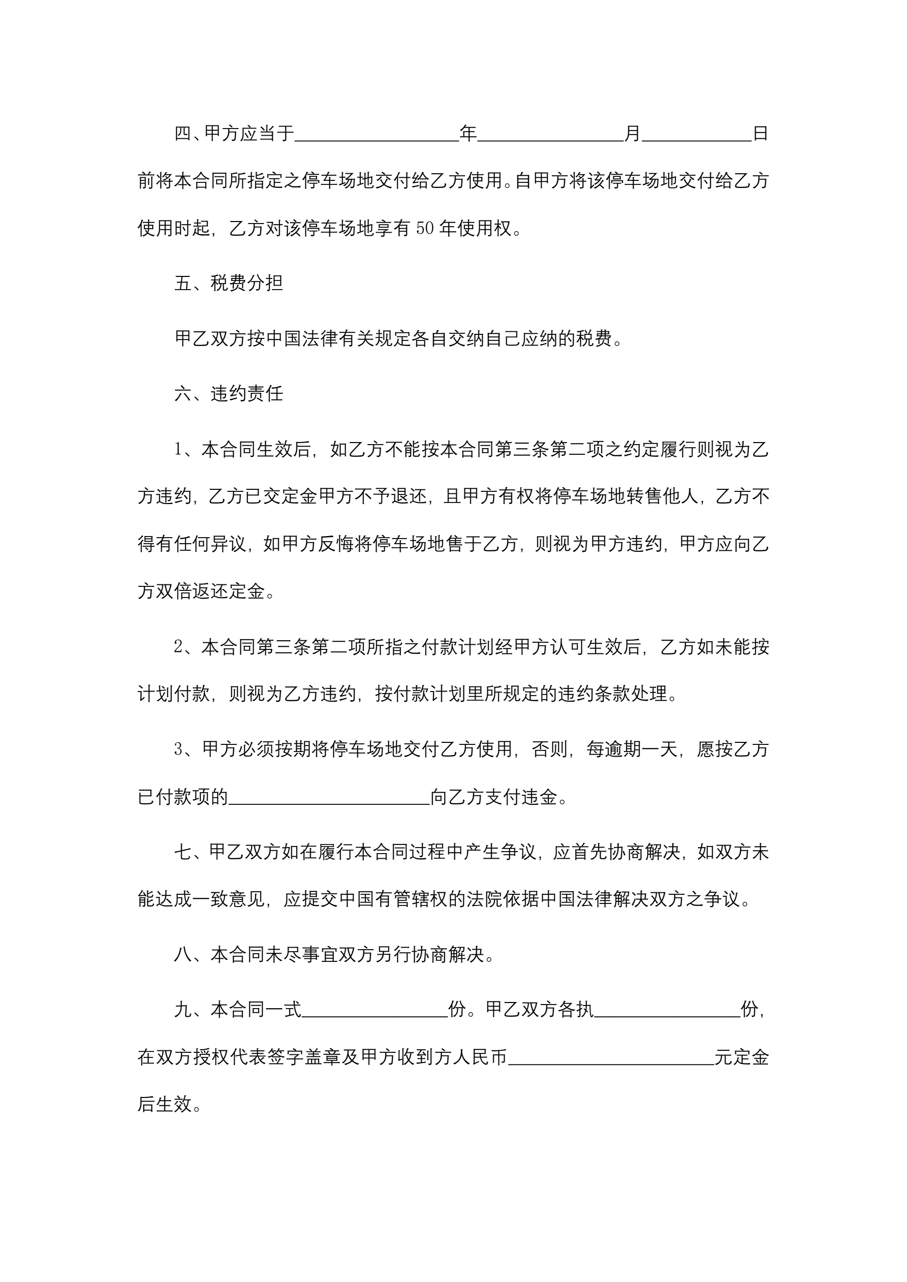 >停车场地买卖合同