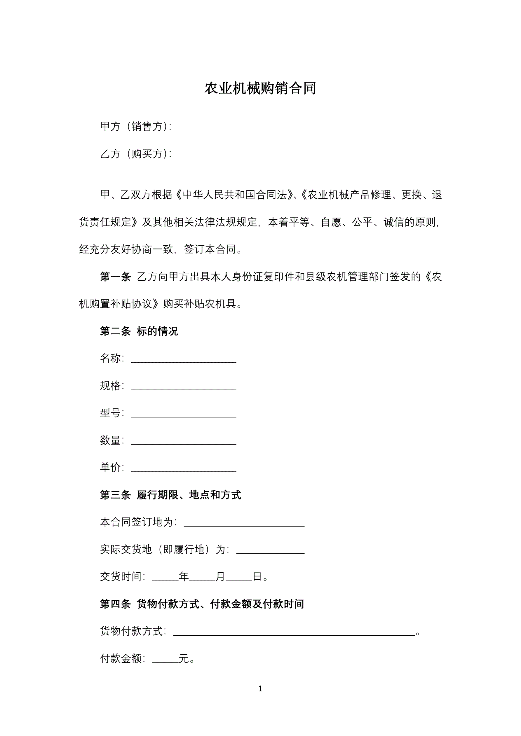 农业机械购销合同