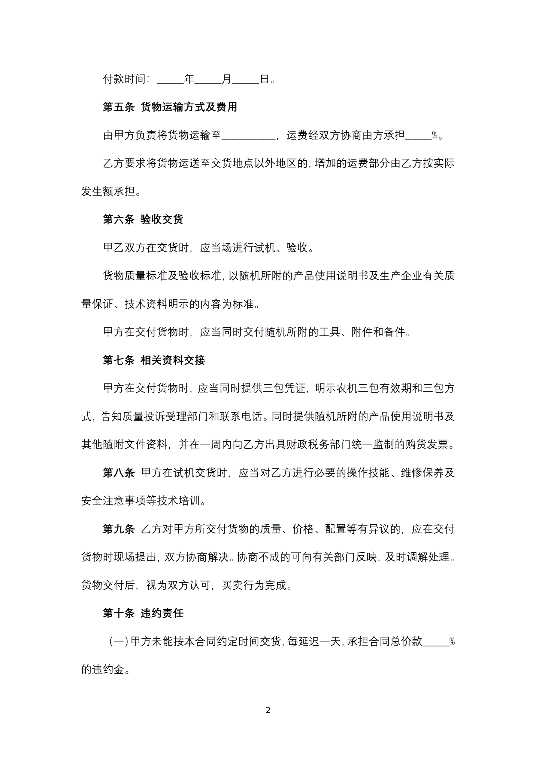>农业机械购销合同