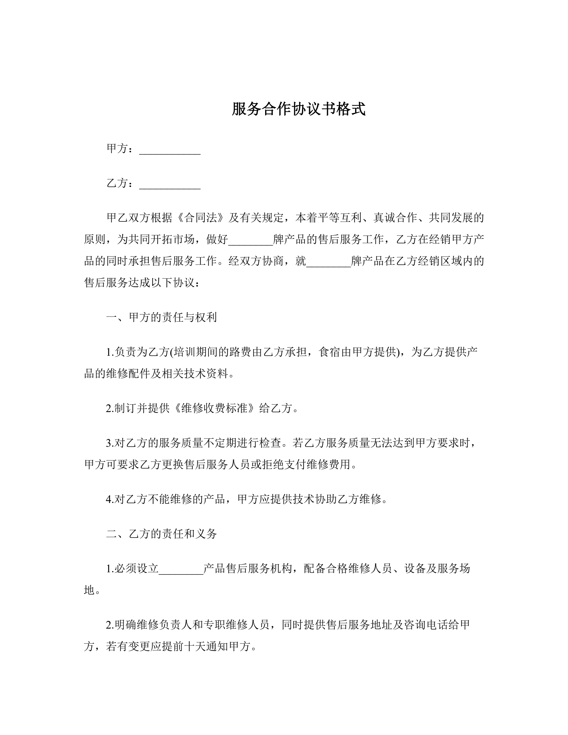 服务合作协议书格式