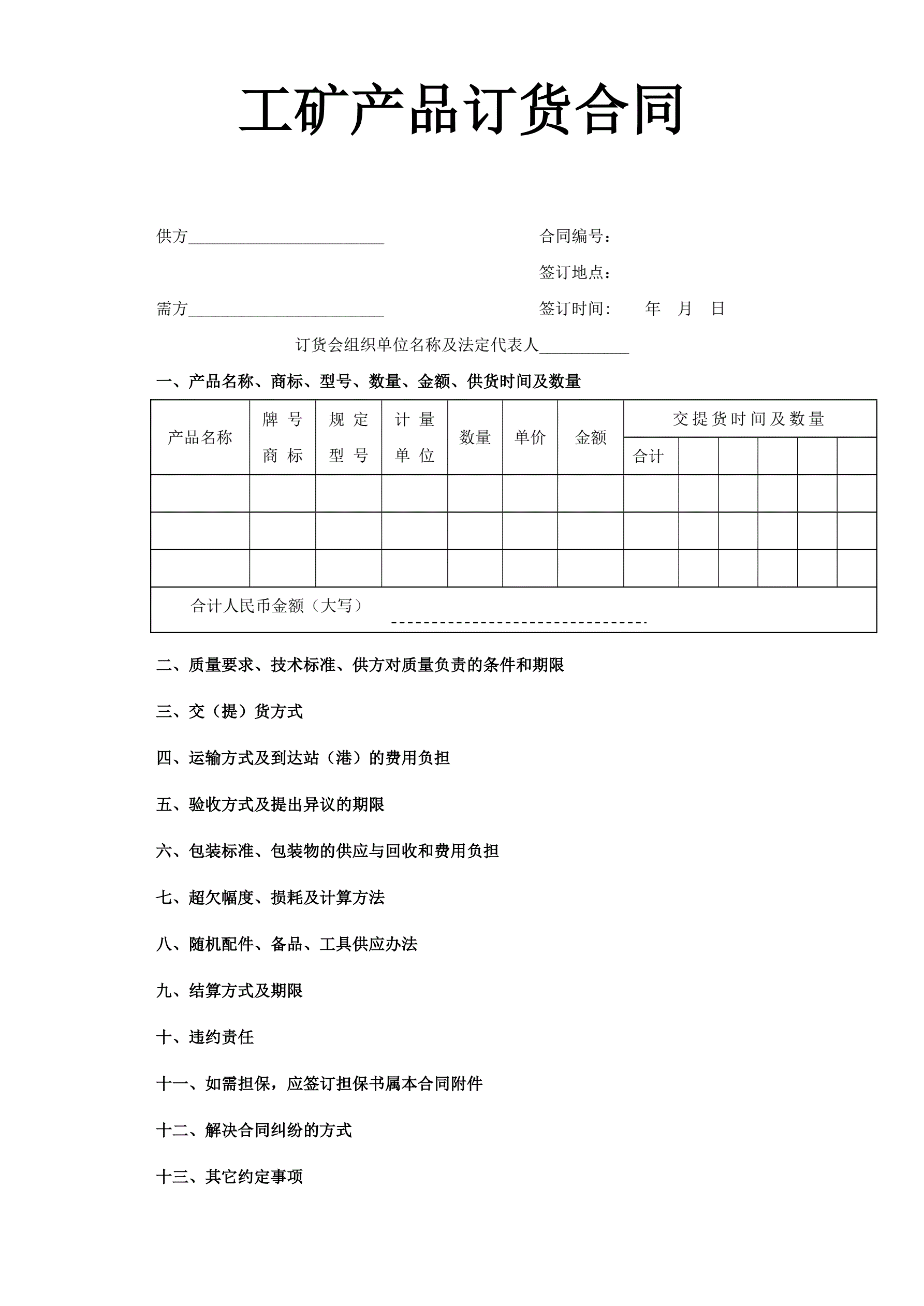 >工矿产品订货合同