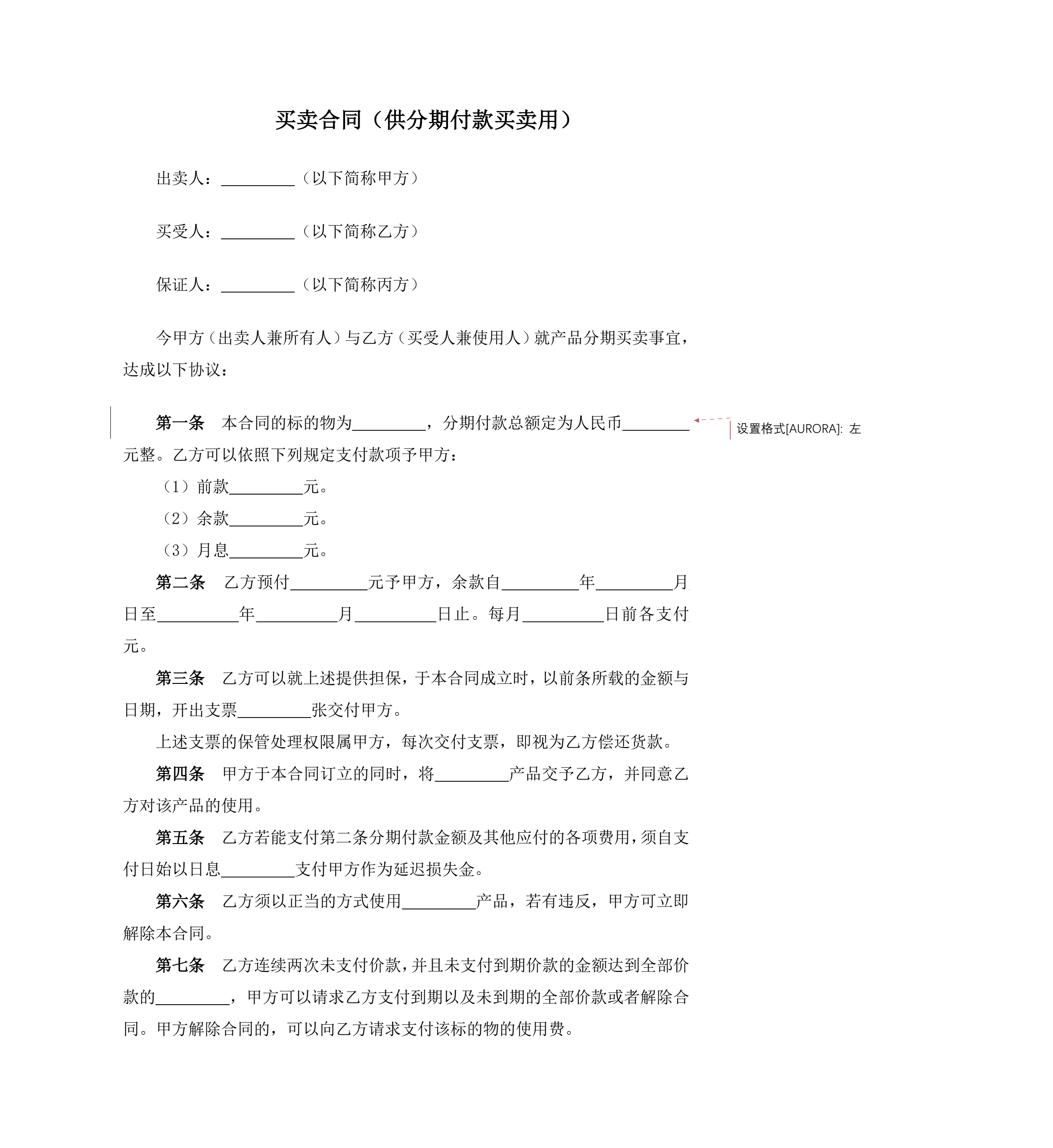买卖合同(供分期付款买卖用)