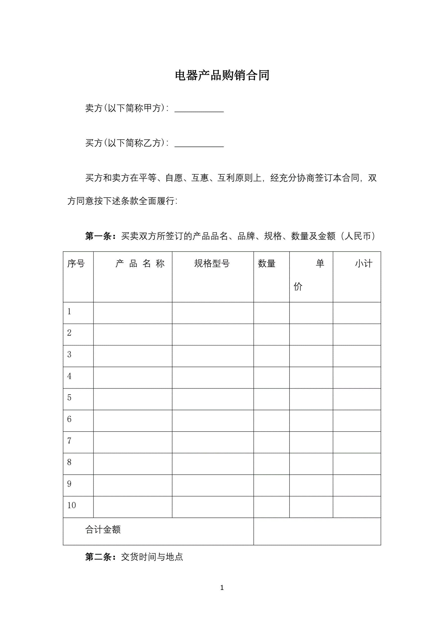 电器产品购销合同