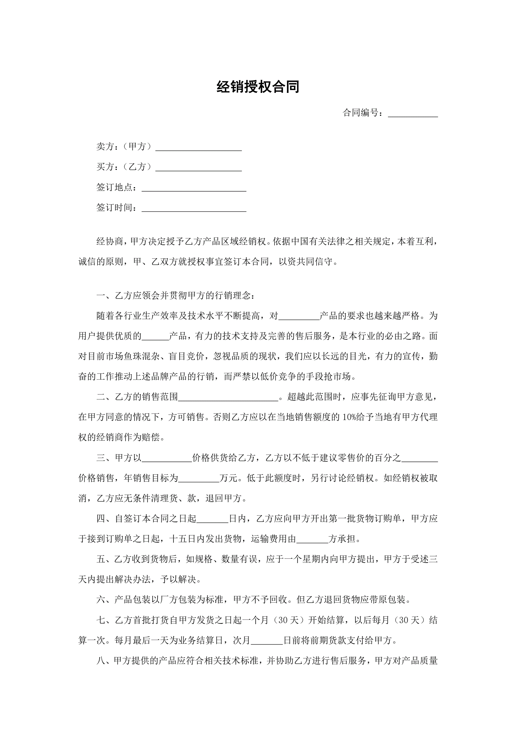经销授权合同