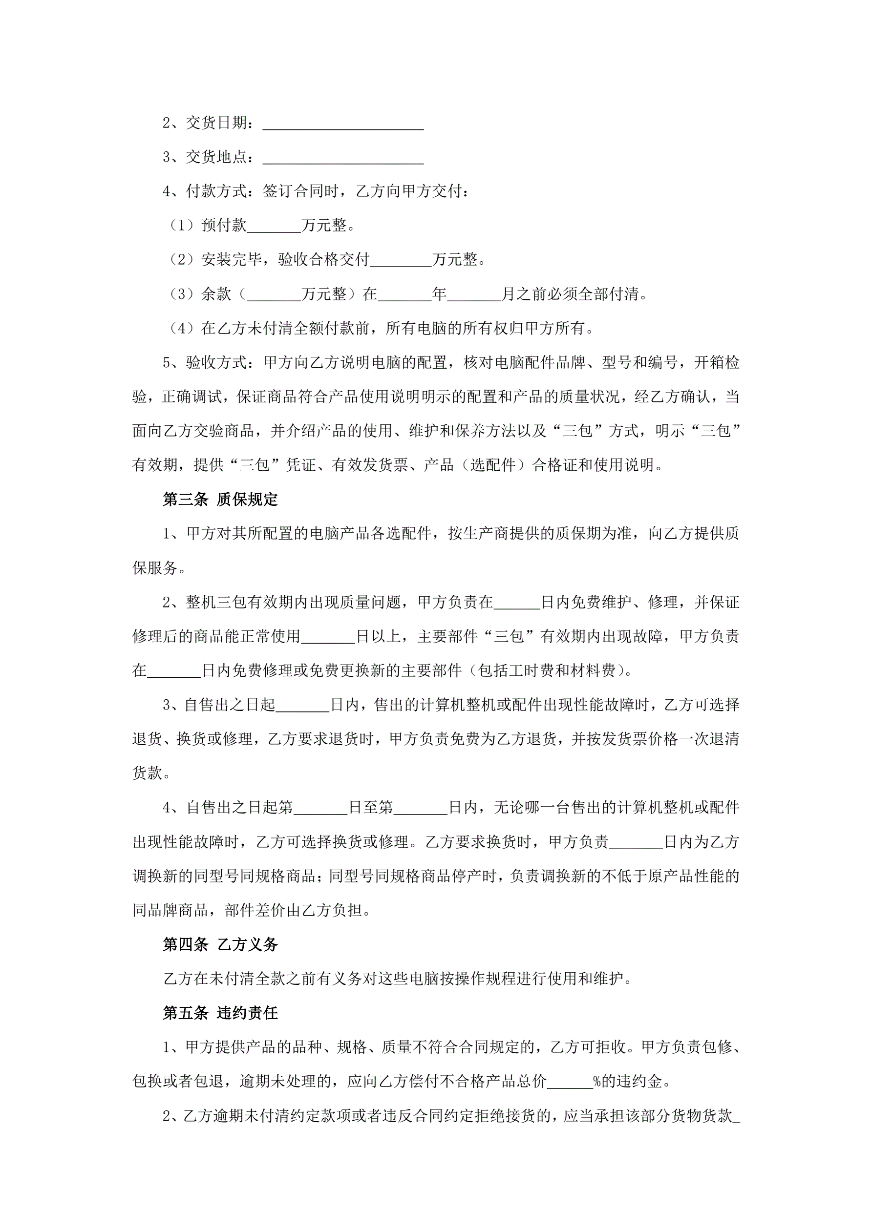 电脑购销合同