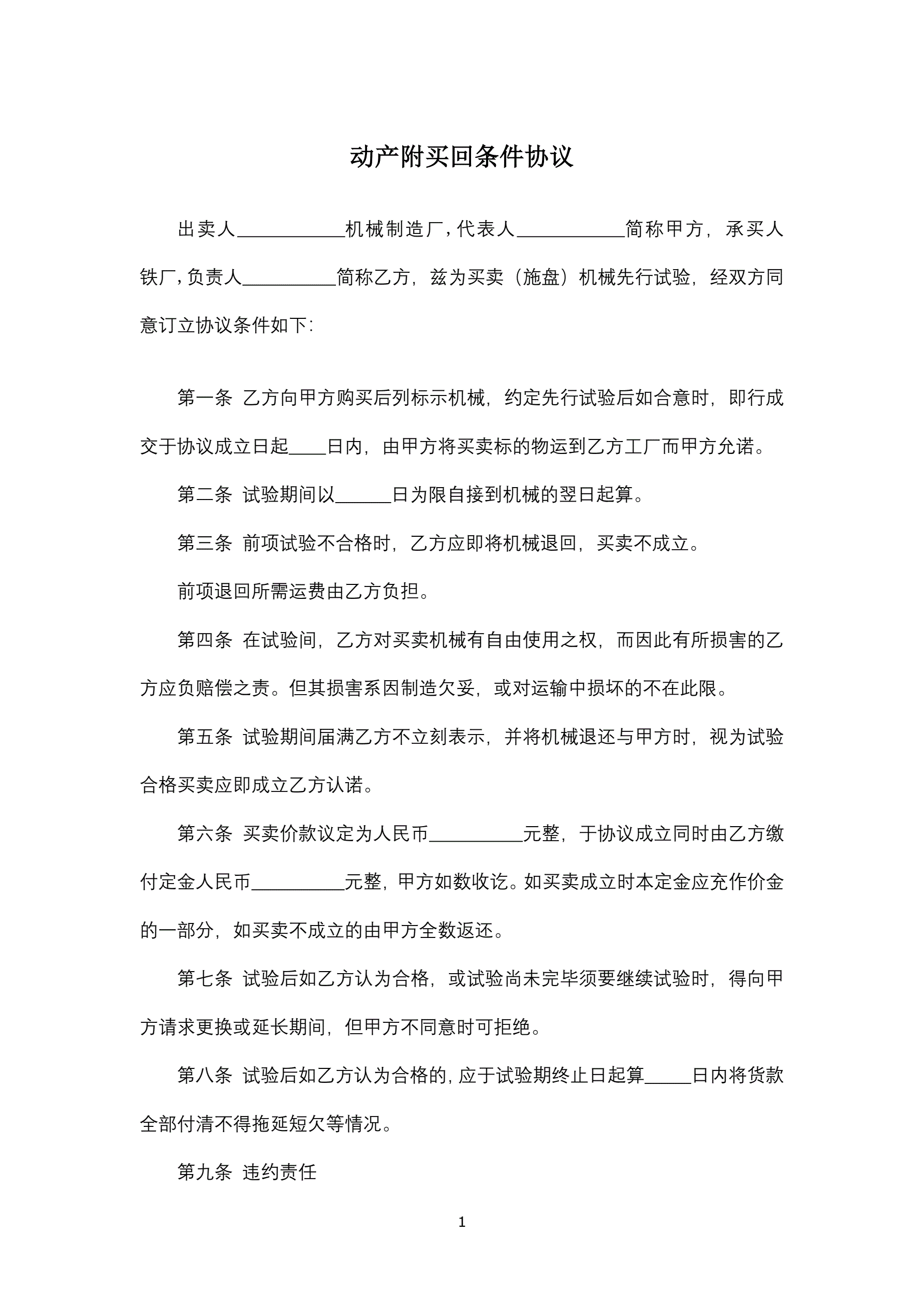 >动产附买回条件协议