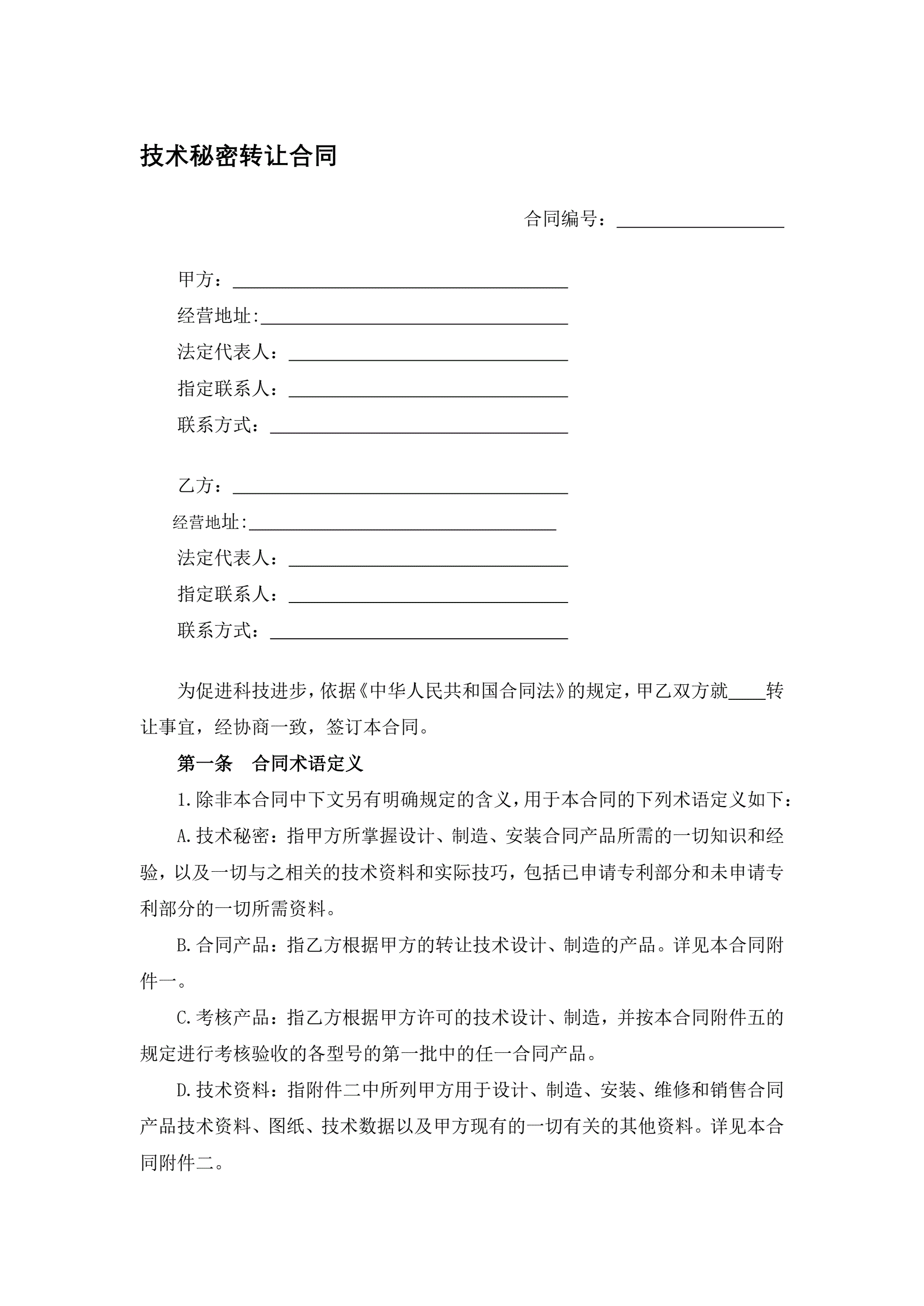 技术秘密转让合同