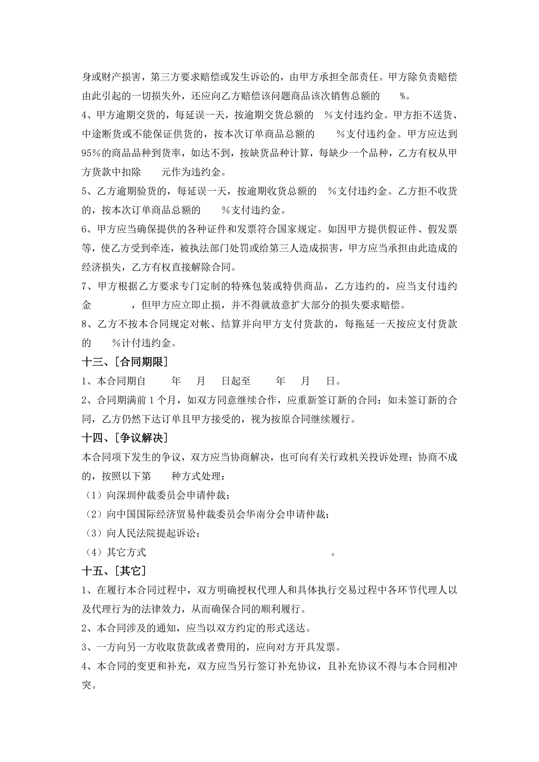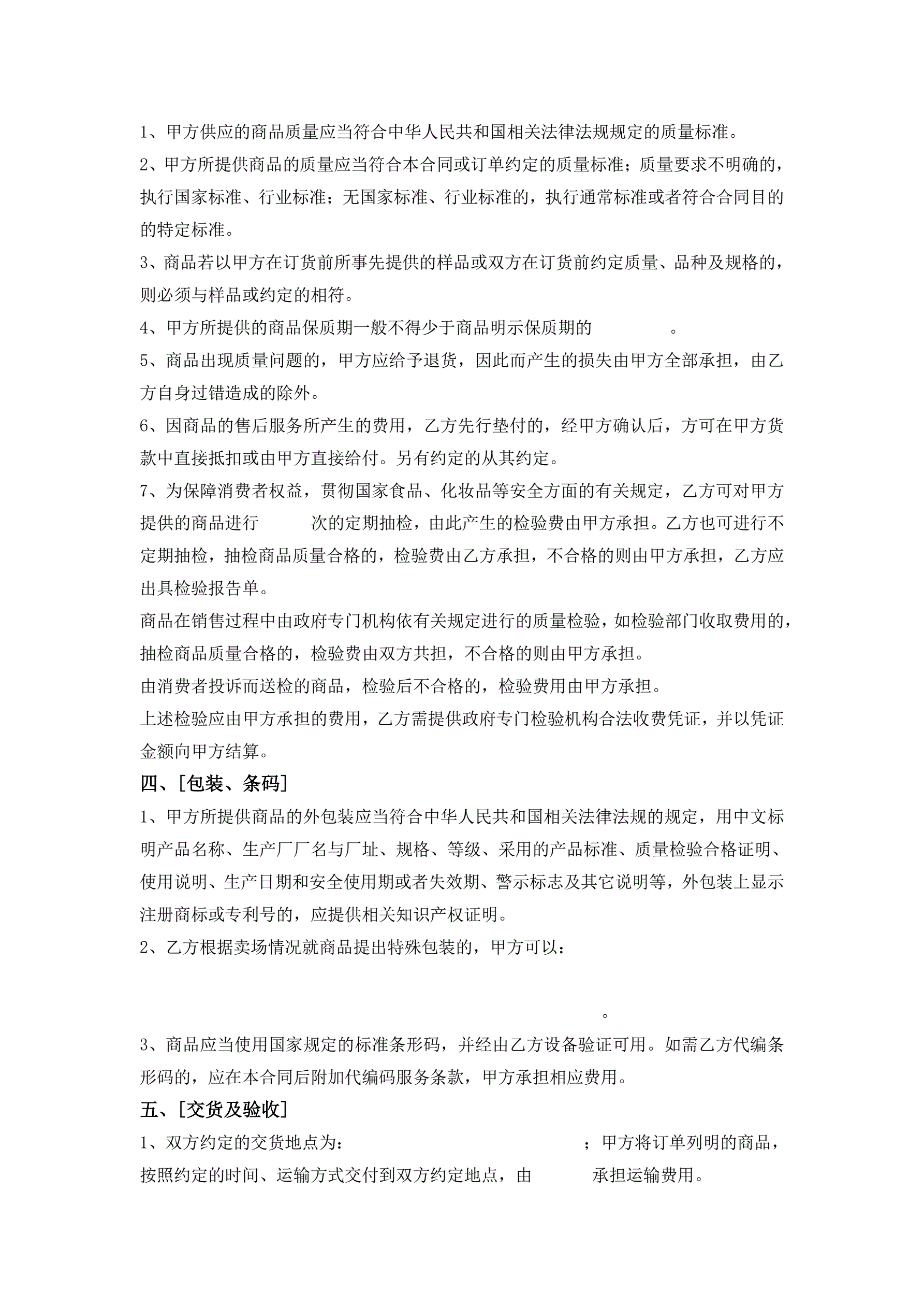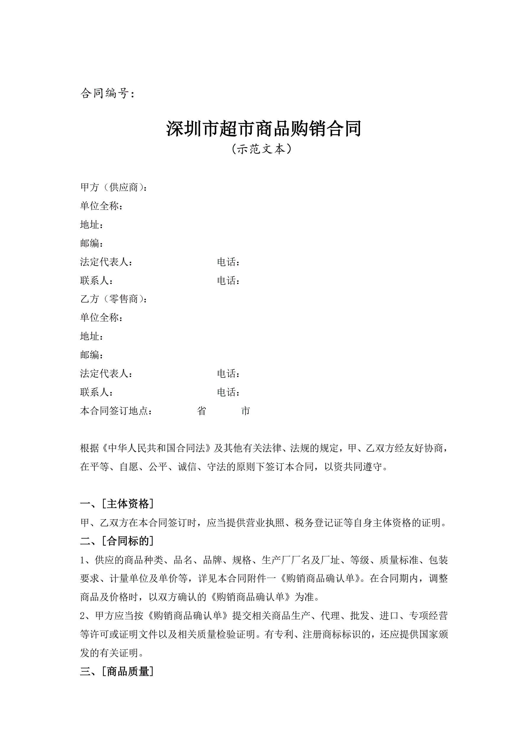>1、深圳市超市商品购销合同