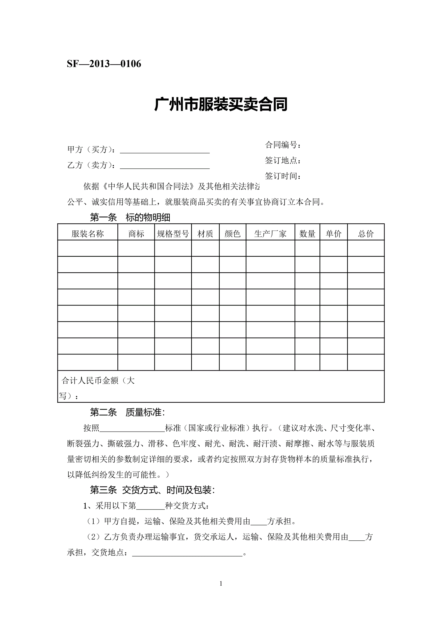 >广州市服装买卖合同