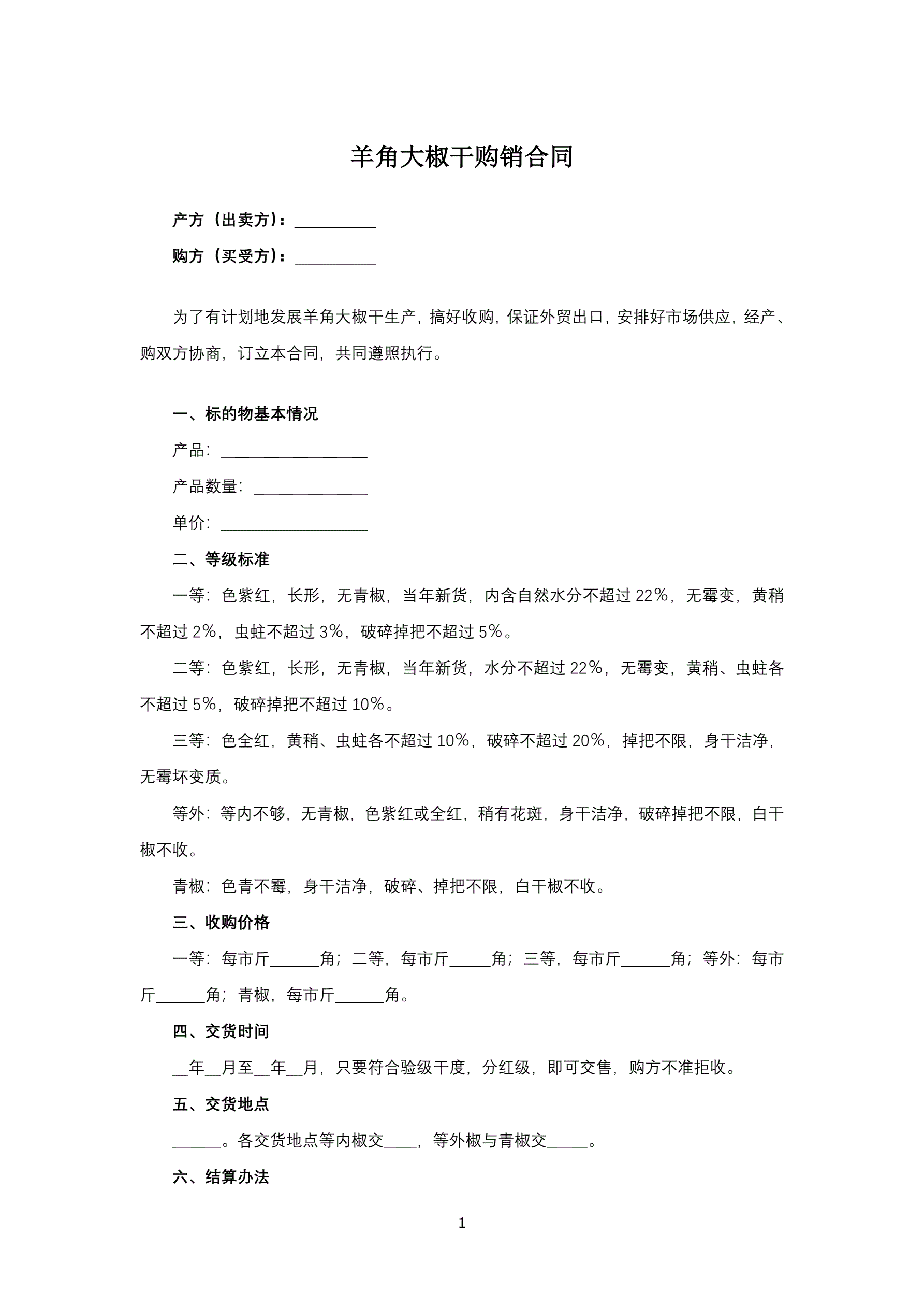羊角大椒干购销合同