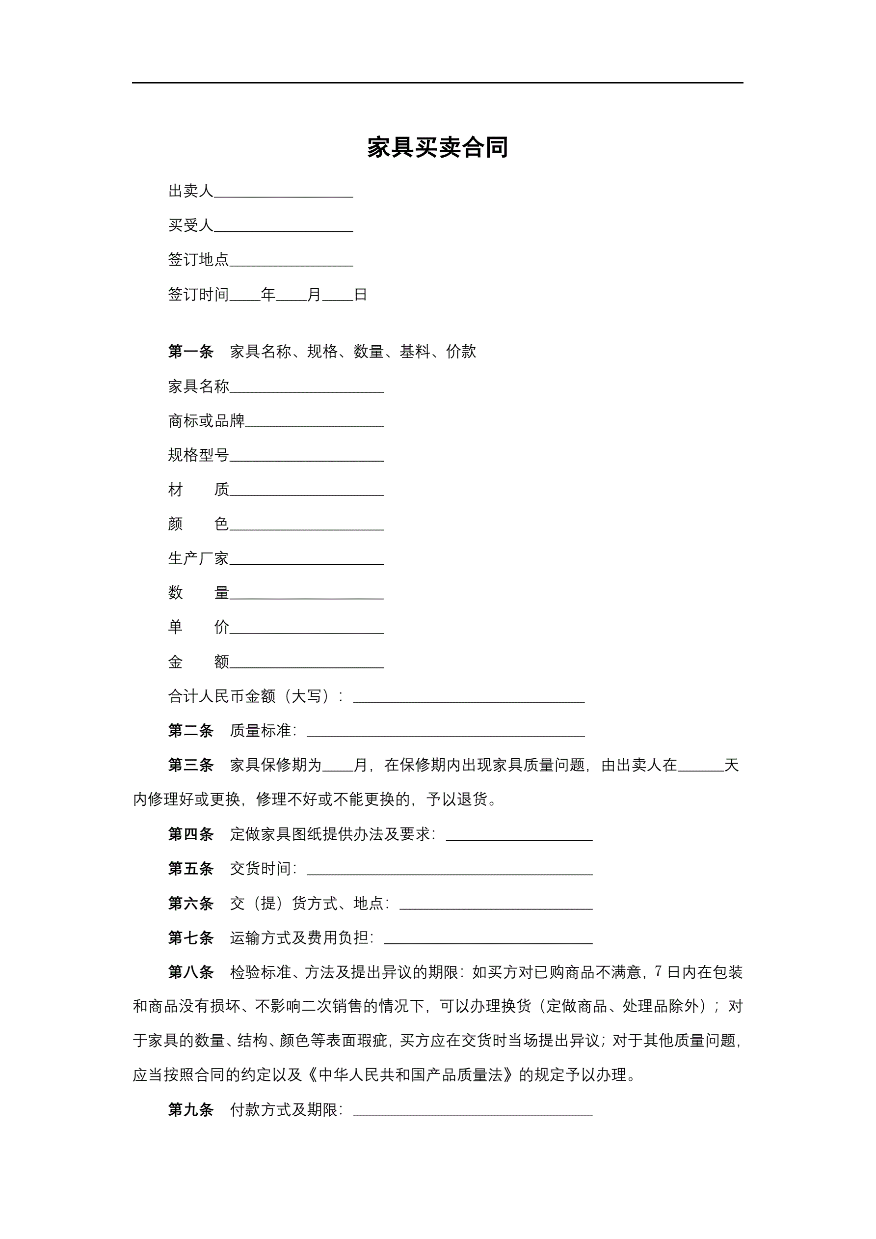 合同名称:家具买卖合同