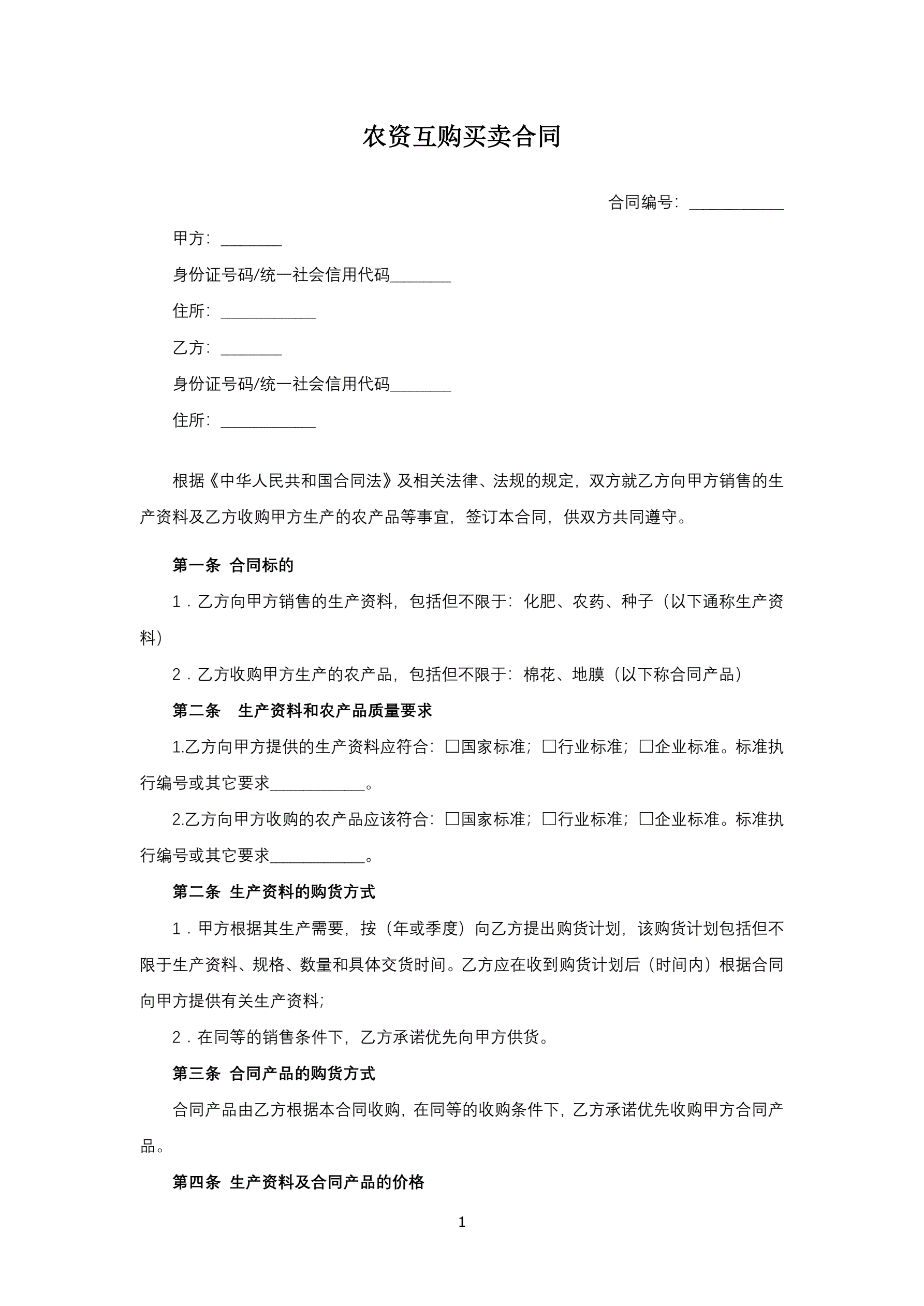 农资互购买卖合同