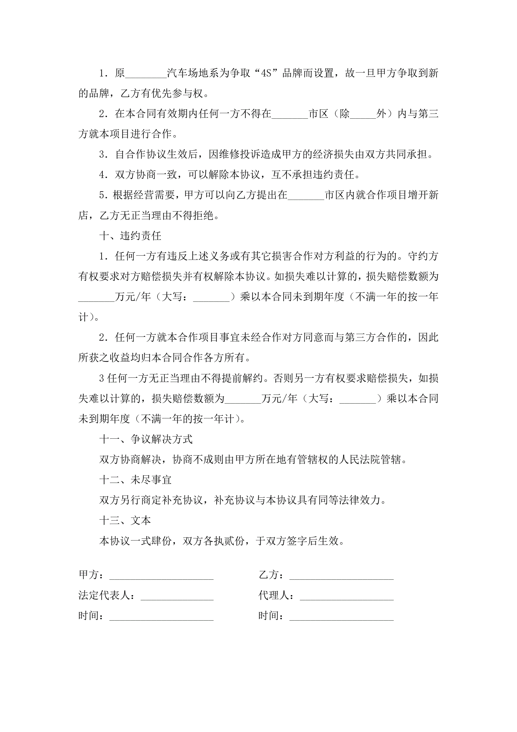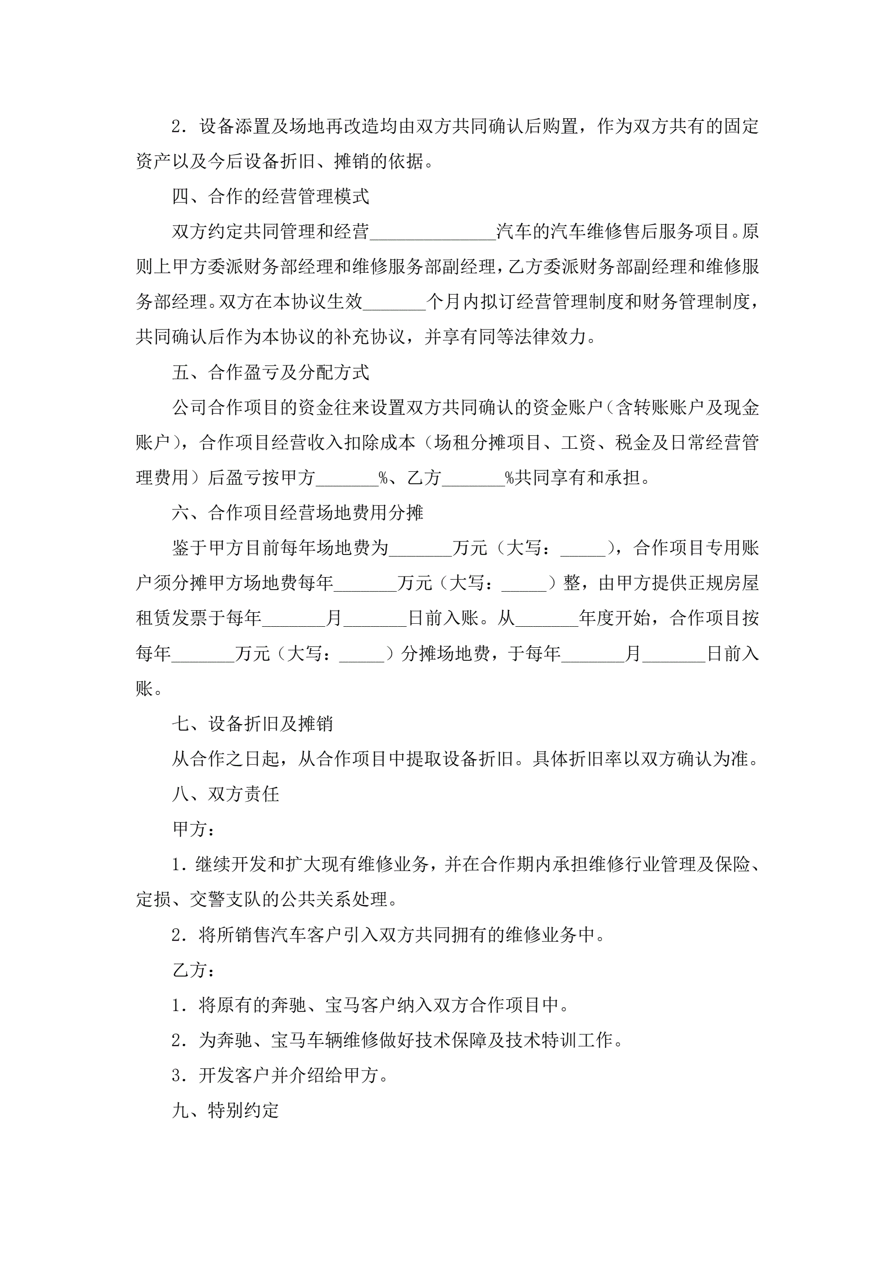 汽车维修售后业务合作协议